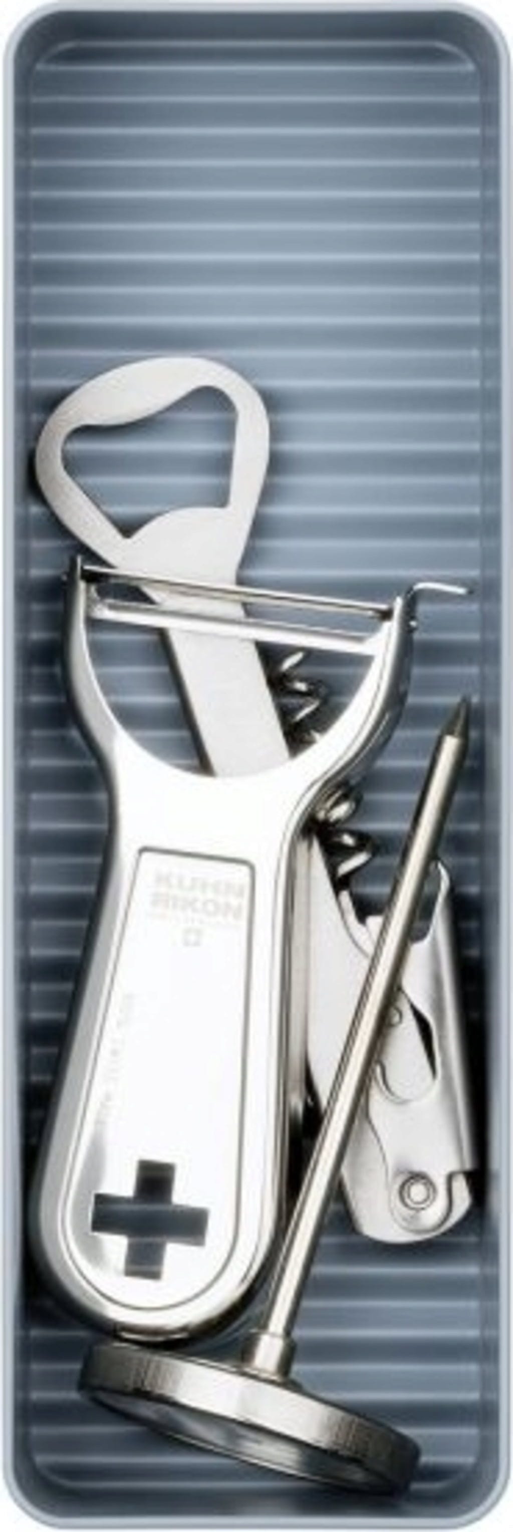 Den tydliga insatsen för lådor är idealisk för att snabbt hitta köksredskap eller till och med kontorsmaterial. Den håller ordning och är lätt att ta bort tack vare den vågformade basen.