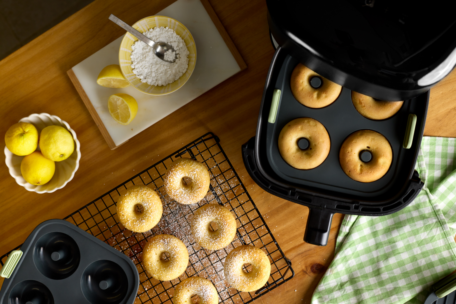 Gör läckra donuts hemma! Med denna praktiska form för airfryer blir det enkelt.