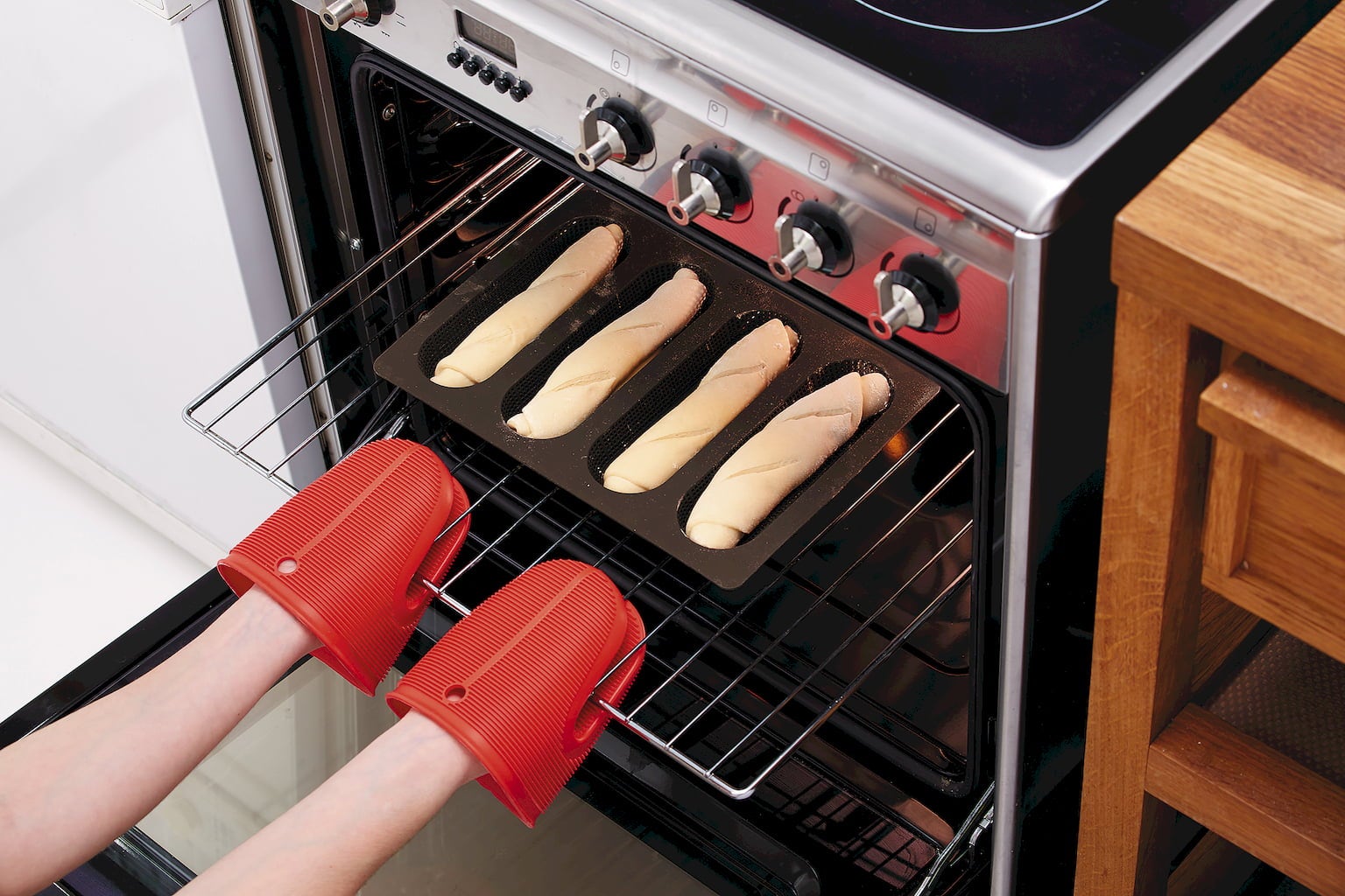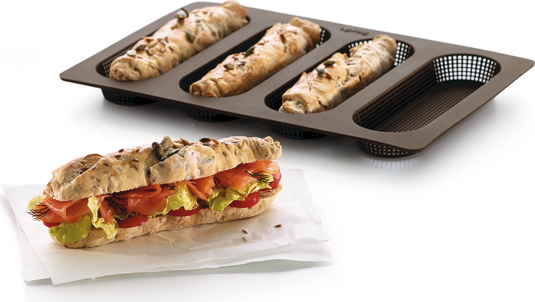 Hemligheten ligger i de smarta mikroperforeringarna som släpper ut överflödig fukt under gräddningen. Resultatet: jämnt frasiga baguetter som är svåra att motstå! Formen är tillverkad i 100 % platinasilikon av hög kvalitet och har naturlig non-stick-yta, vilket gör det enkelt att lossa de färdiga bakverken.
