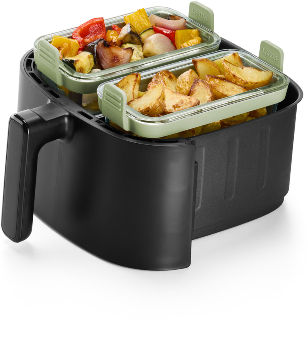 Dessa smarta multitalanger i tåligt borosilikatglas låter dig tillaga två olika rätter samtidigt i airfryern, utan att smakerna blandas. De fungerar även i ugn och mikrovågsugn.