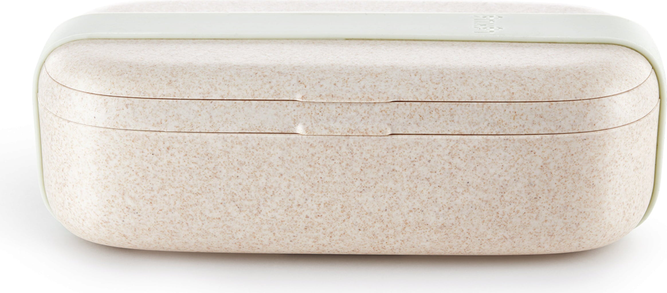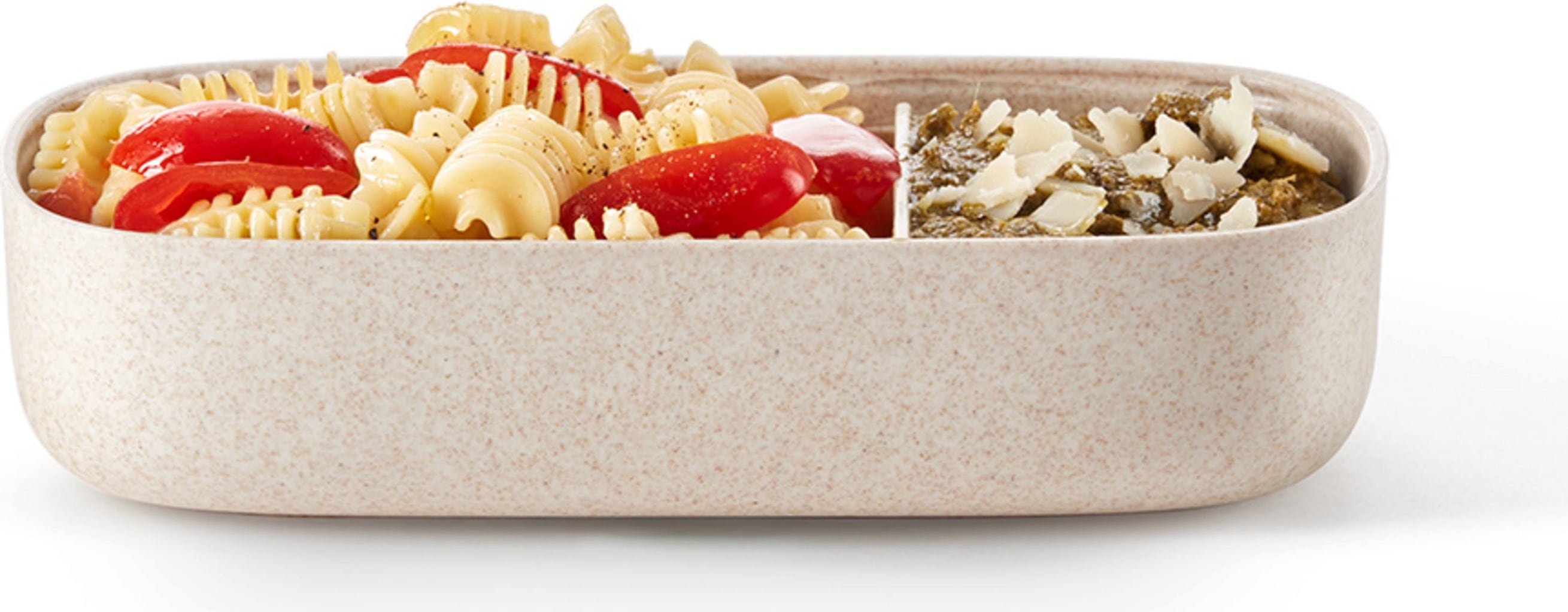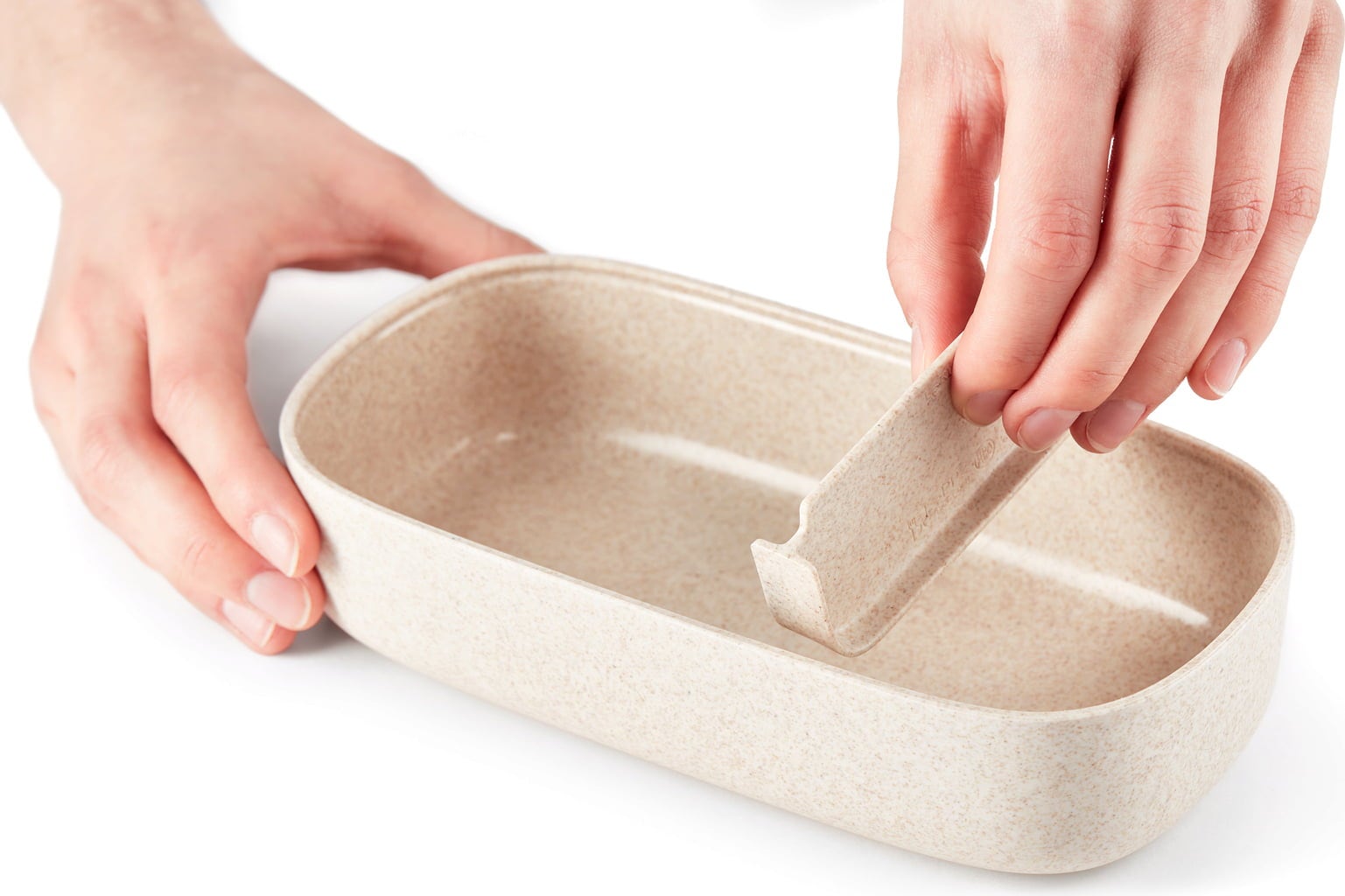 Tillverkad i en innovativ materialmix av träfiber och återvinningsbar, livsmedelsgodkänd polypropen gör denna lunchlåda till ett medvetet alternativ – och ett farväl till engångsförpackningar!