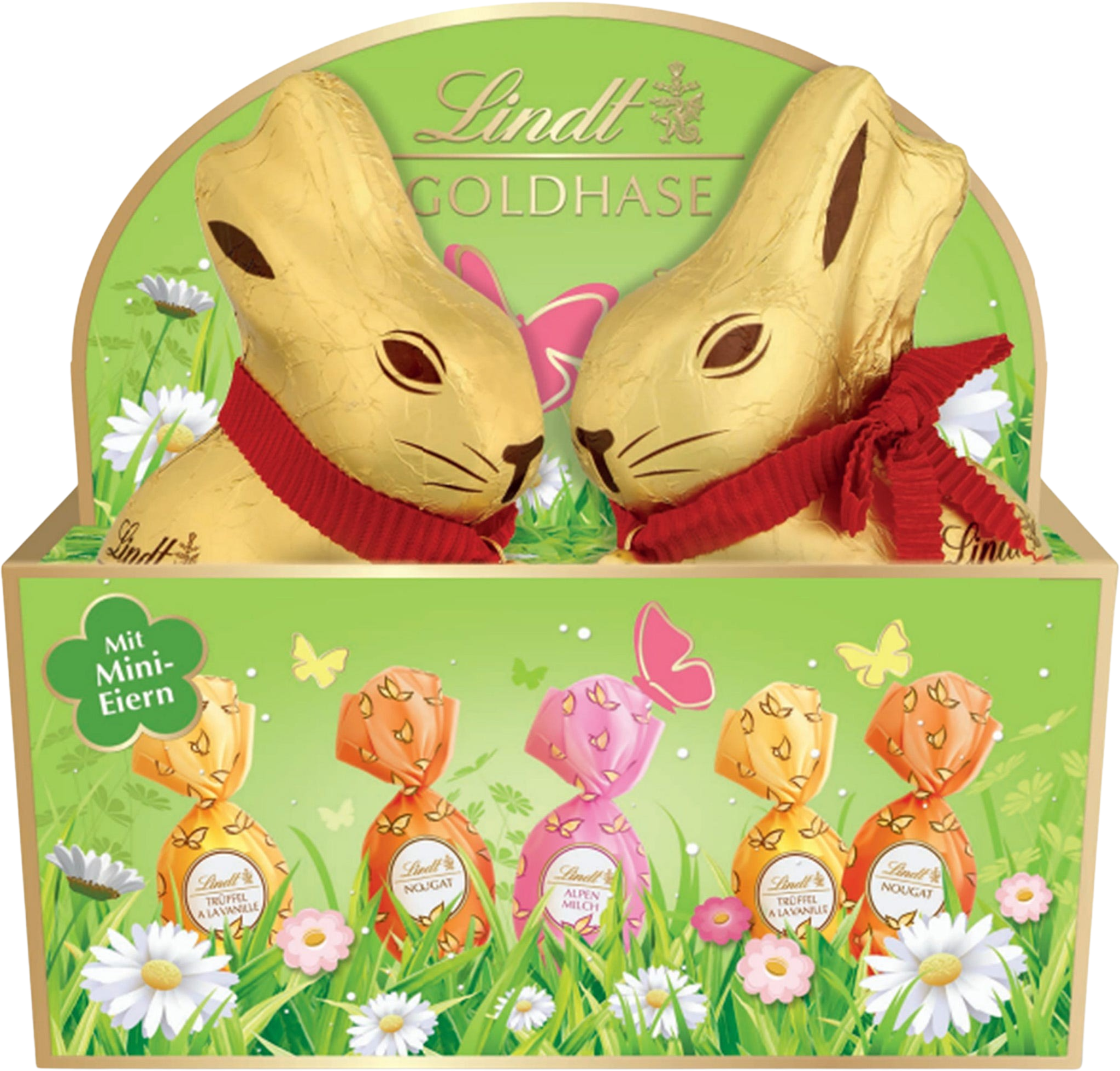 Med Lindt Vårbo får du hela påsktraditionen samlad i en enda förpackning! Två små, ljuvliga guldkaniner samsas med ett färgglatt urval av lena miniägg - vackert inbäddade i en vårinspirerad inramning. Perfekt att dela med andra eller ge bort som en omtänksam present!
