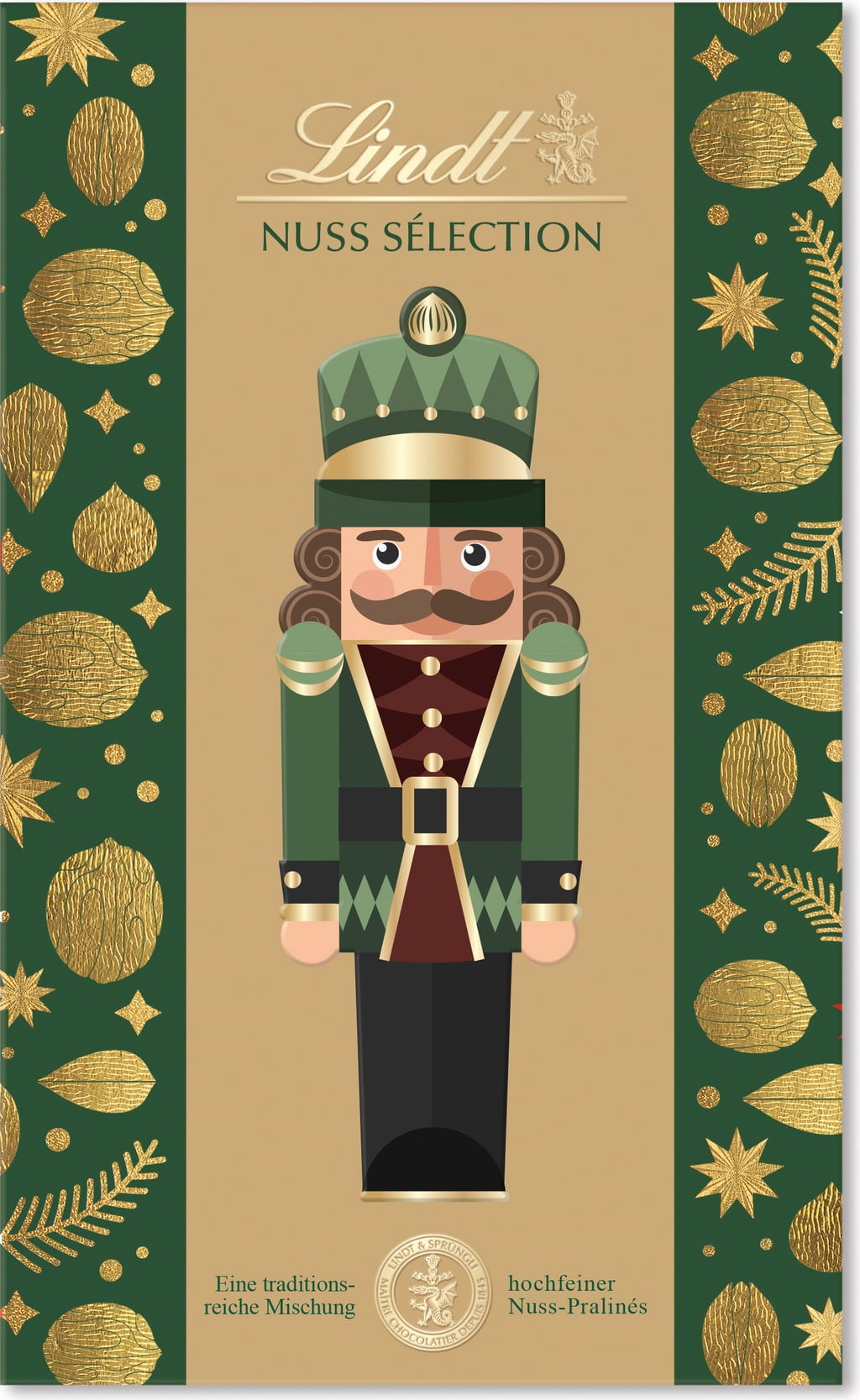 Nuss Sélection från Lindt med de finaste pralinkreationerna i en festlig julpojke - perfekt som present. Pralinerna innehåller alkohol och denna passar därför endast som present till vuxna.