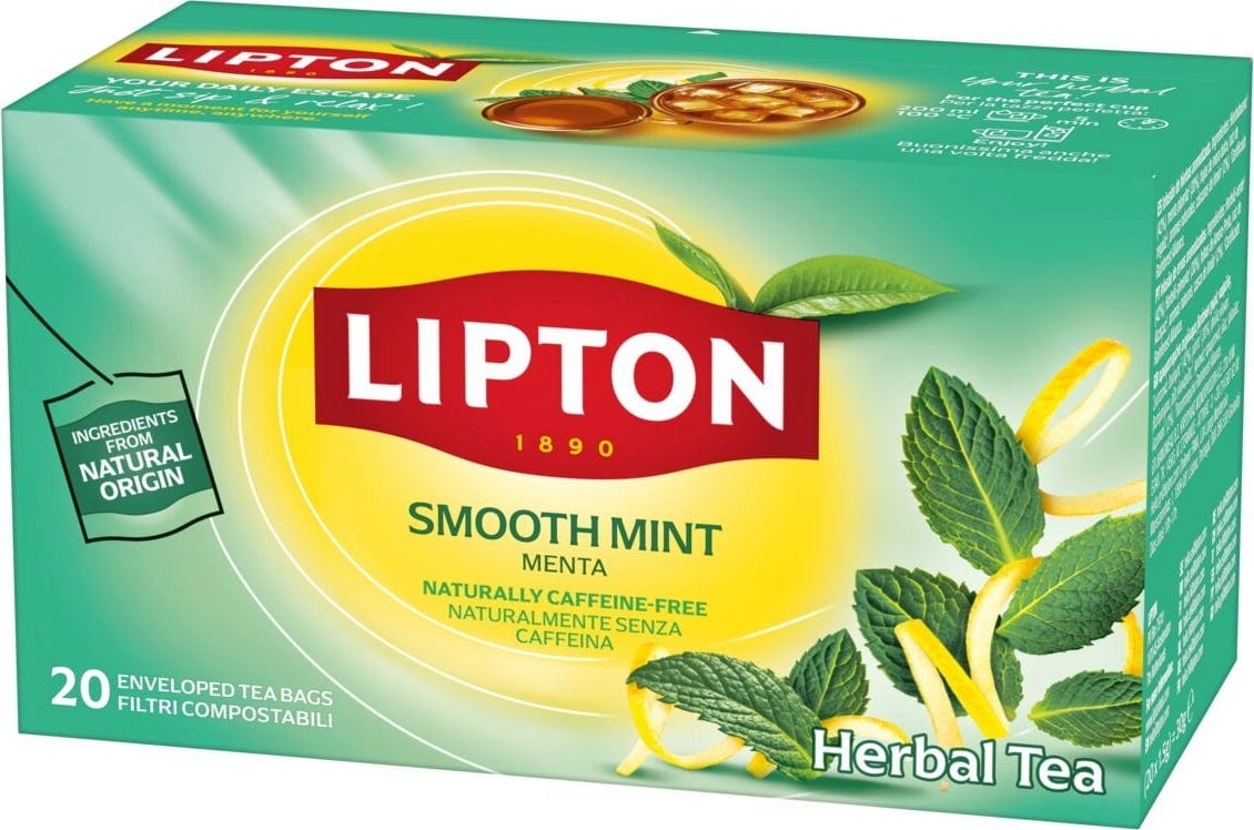 Med Lipton Smooth Mint upplever du en särskilt ren smakupplevelse från en perfekt balanserad blandning av grönmynta och pepparmynta! Eftersom detta örtte är naturligt koffeinfritt är dess svala ton perfekt att följa med dig under dagen eller som en uppfriskande touch efter måltiderna. De högkvalitativa, naturligt framställda ingredienserna sprider sin fylliga, milda arom i individuellt förpackade, komposterbara tepåsar, vilket skapar din egen personliga njutningsupplevelse.