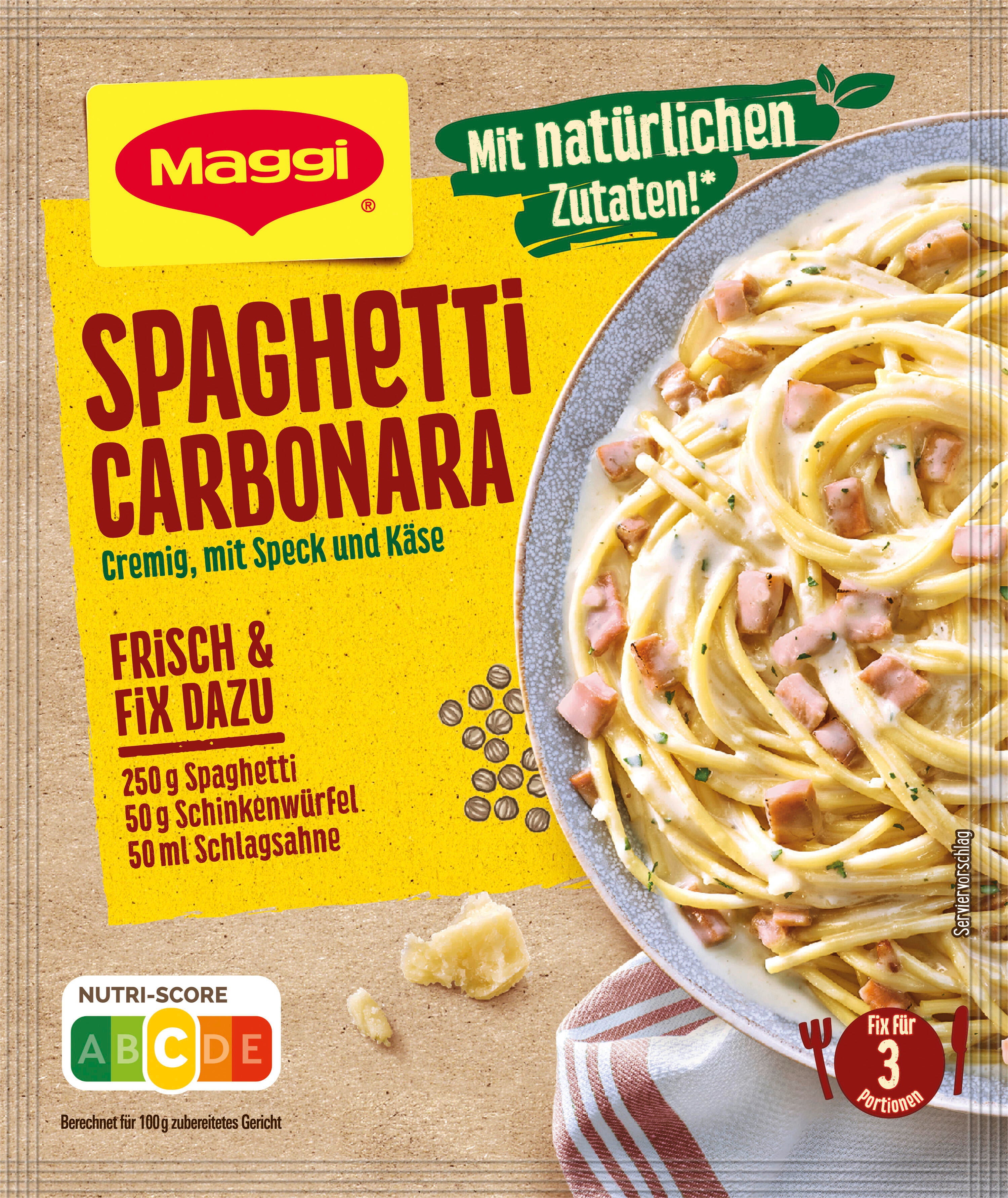 Sugen på spaghetti i en krämig gräddsås med smak av bacon? Med Maggis kryddmix för Spaghetti Carbonara lagar du denna italienska favorit på nolltid. Den krämiga såsen med mild pepparsmak passar till alla sorters pasta och är både snabb och enkel att tillaga.