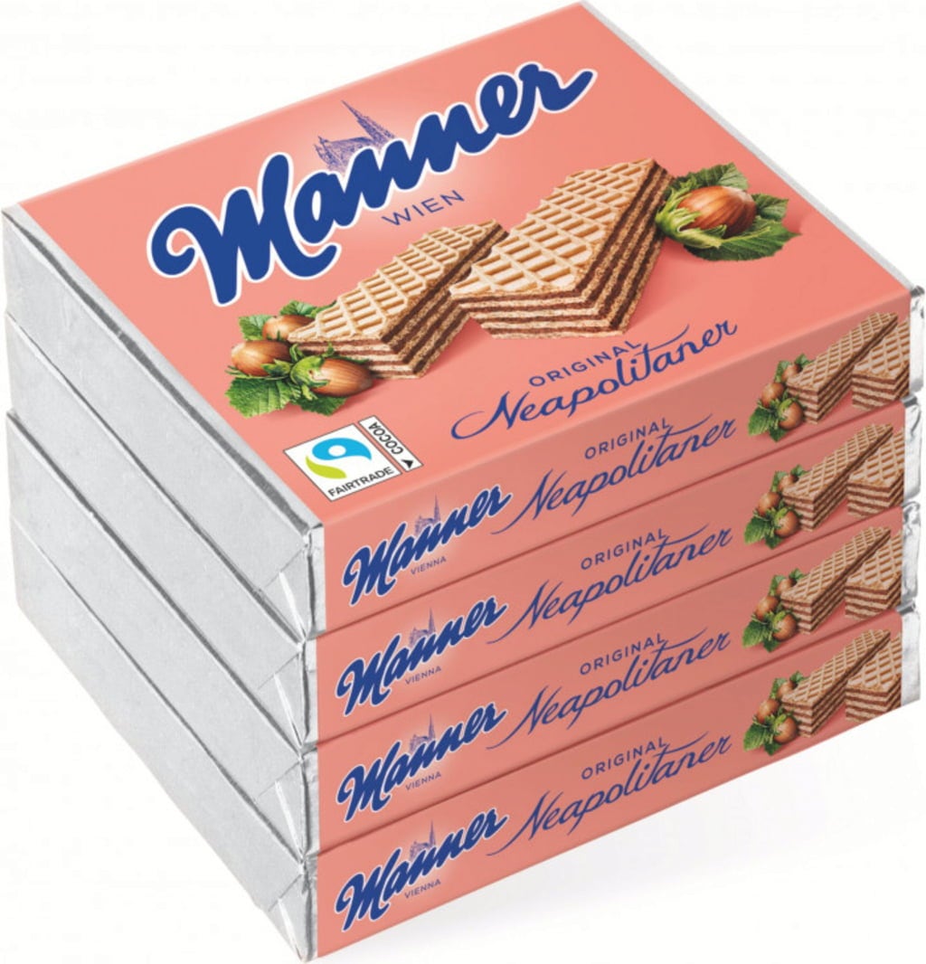 En bit österrikisk konfektyrhistoria sedan över hundra år tillbaka: den ursprungliga Manner Neapolitaner Snittarna. Den här snitten med fem tunna, krispiga platta våfflor fyllda med en fin hasselnötskakaokräm, som tillverkas enligt ett traditionellt grundrecept med de bästa ingredienserna, är en av de mest populära konfektyrprodukterna från Österrike: över 63 miljoner Original Manner Neapolitaner Snittar säljs varje år över hela världen!