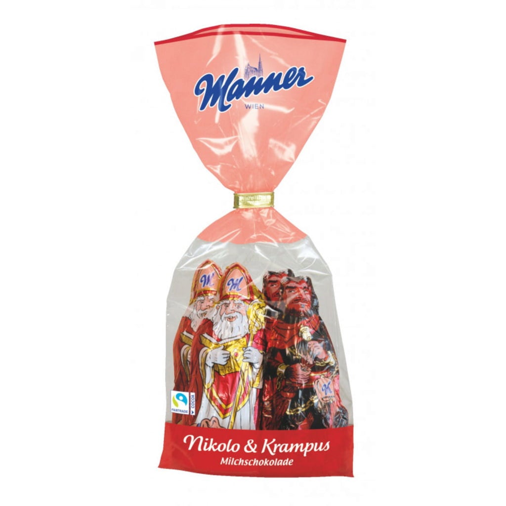 Den 5 och 6 december är det St Nicholas och Krampus Day igen. Under dessa dagar får naturligtvis inte de traditionella Manner-figurerna gjorda av mjölkchoklad som smälter i munnen saknas. De 4 bitarna väntar bara på att bli uppätna med glädje. Vegetariskt recept, utan gluten och utan ägg.