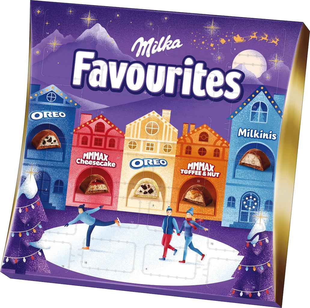 Milka Favorites adventskalender imponerar med sin design med jultema och innehåller fem olika typer av läckra chokladgodis. Så du kan söta varje adventsdag med delikatesser från Milka - det finns något för alla smaker!