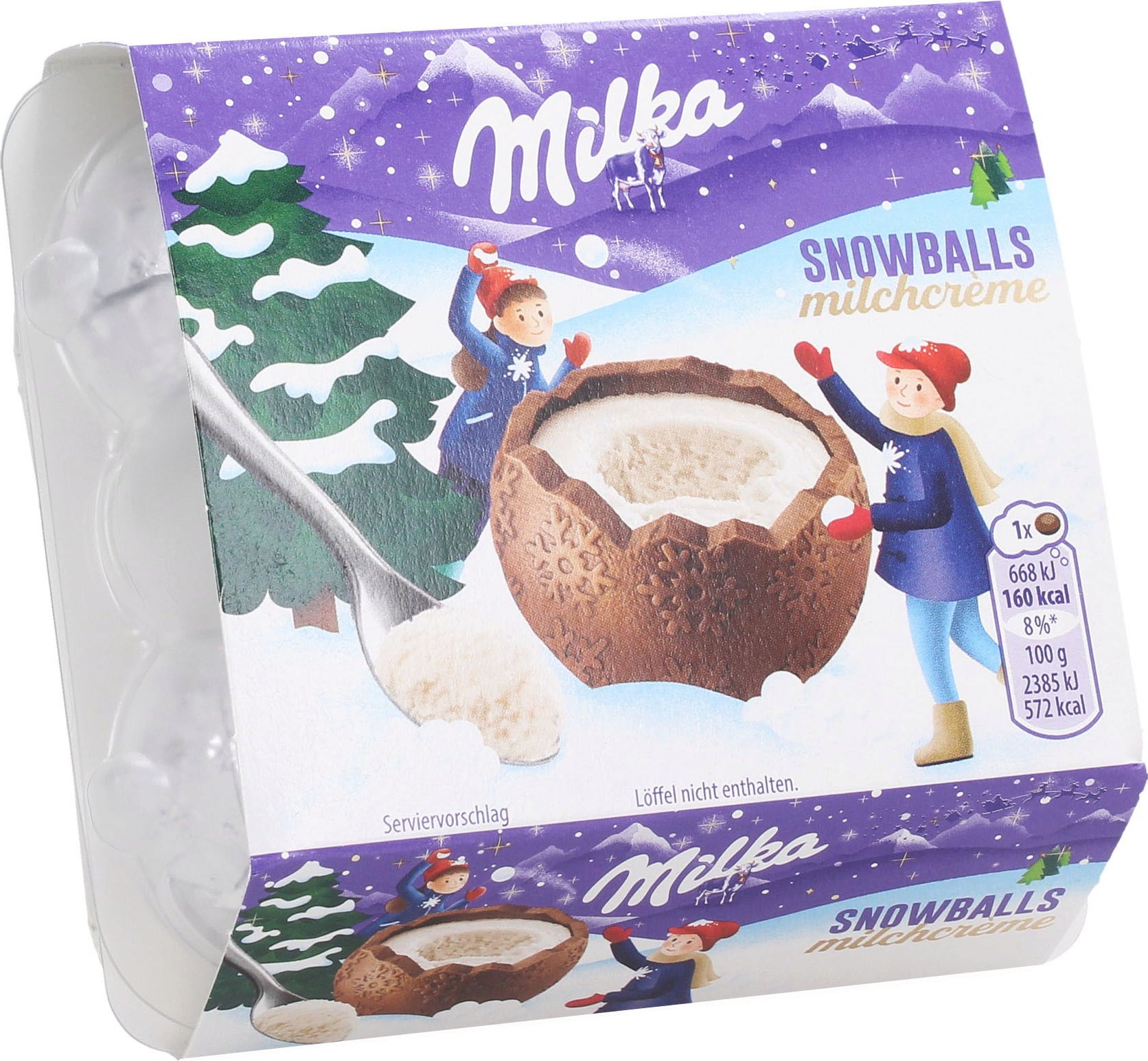 Denna Milka-skapelse har varit känd som chokladägg i decennier. För att förtrolla julen med Milka original finns nu den populära klassikern även i vintersnöbollsdesign. Alpin mjölkchoklad täcker en fluffig mjölkkrämmousse. Perfekt för att fylla adventskalendern, ge bort i present eller njuta däremellan.