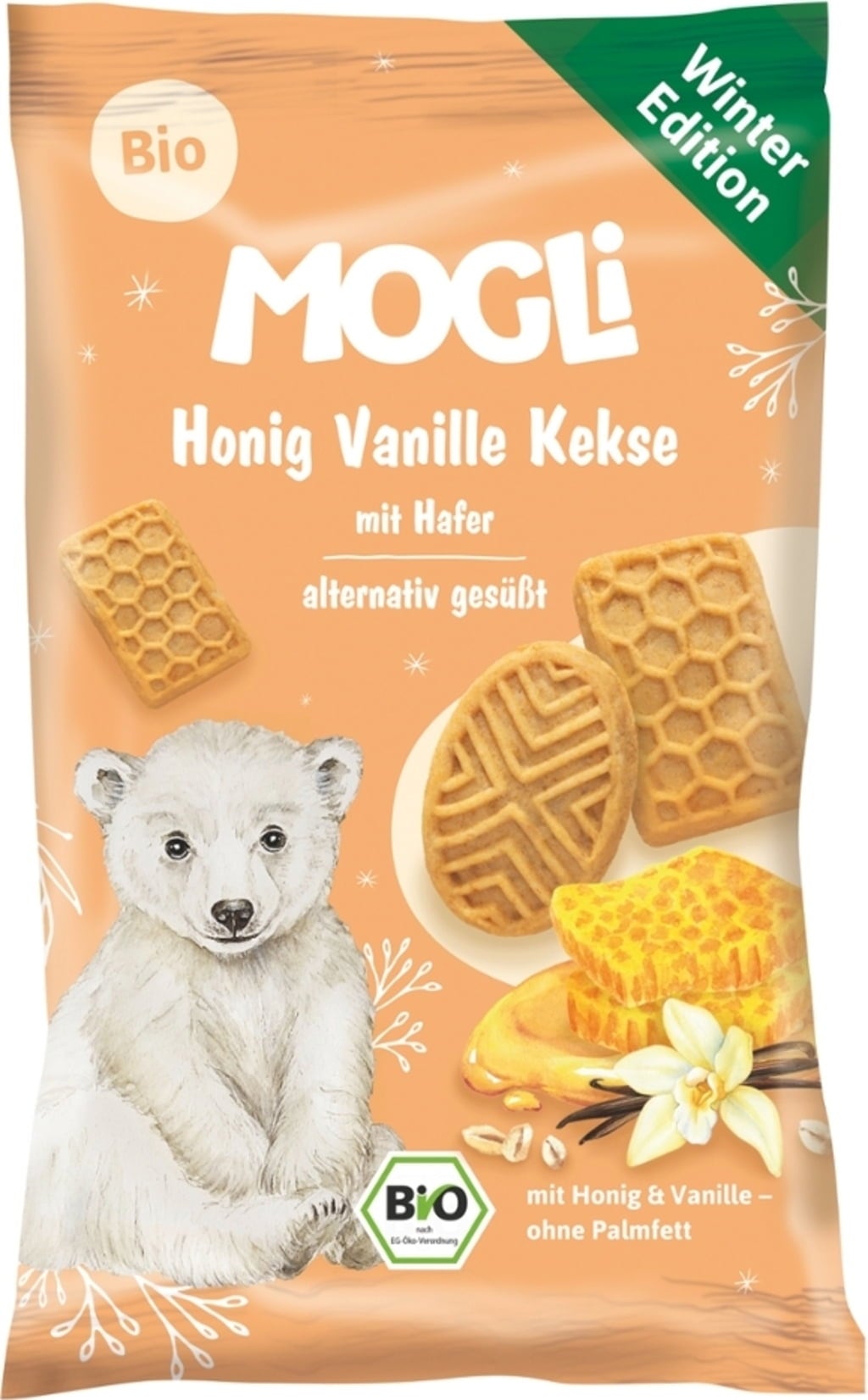 Sugen på ett kex som värmer som en vintertröja? De ekologiska honungs- och vaniljkexen från MOGLi är det perfekta mellanmålet för kalla dagar - underbart väldoftande, delikat söta och krispiga. Med fin honung, äkta vanilj och hälsosam havre ger de vinterlig njutning till din vardag. Naturligt ekologiska, palmoljefria och alternativt sötade - perfekt för både stora och små med en söt tand.