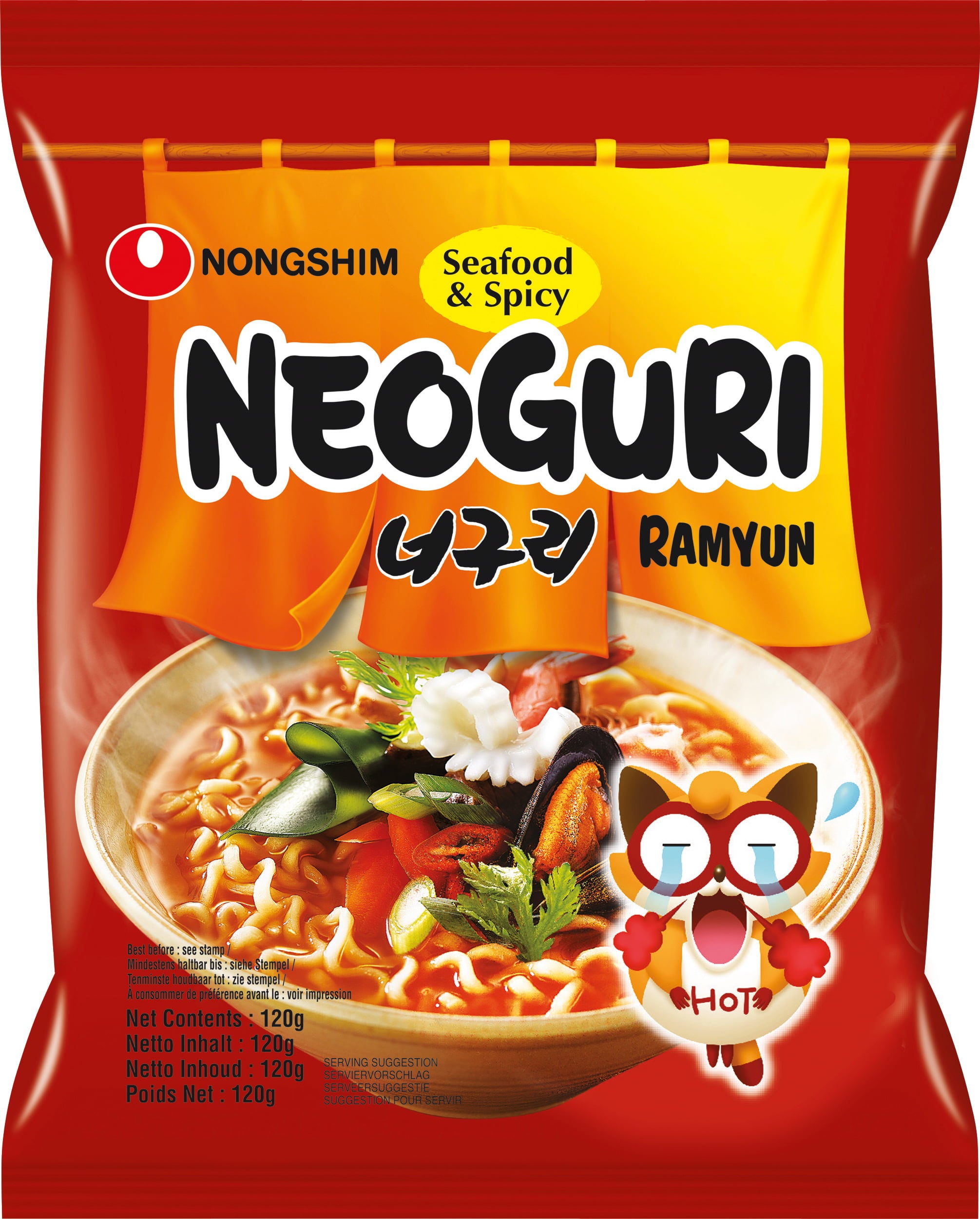NONGSHIM Snabbnudlar Neoguri Spicy ger dig en oslagbar mix av hetta och skaldjur! Buljongen är smakrik och eldigt kryddad, med toner av bläckfisk, räkor och musslor – en kombination som verkligen sätter smaklökarna i rörelse. De tuggvänliga nudlarna fulländar rätten.