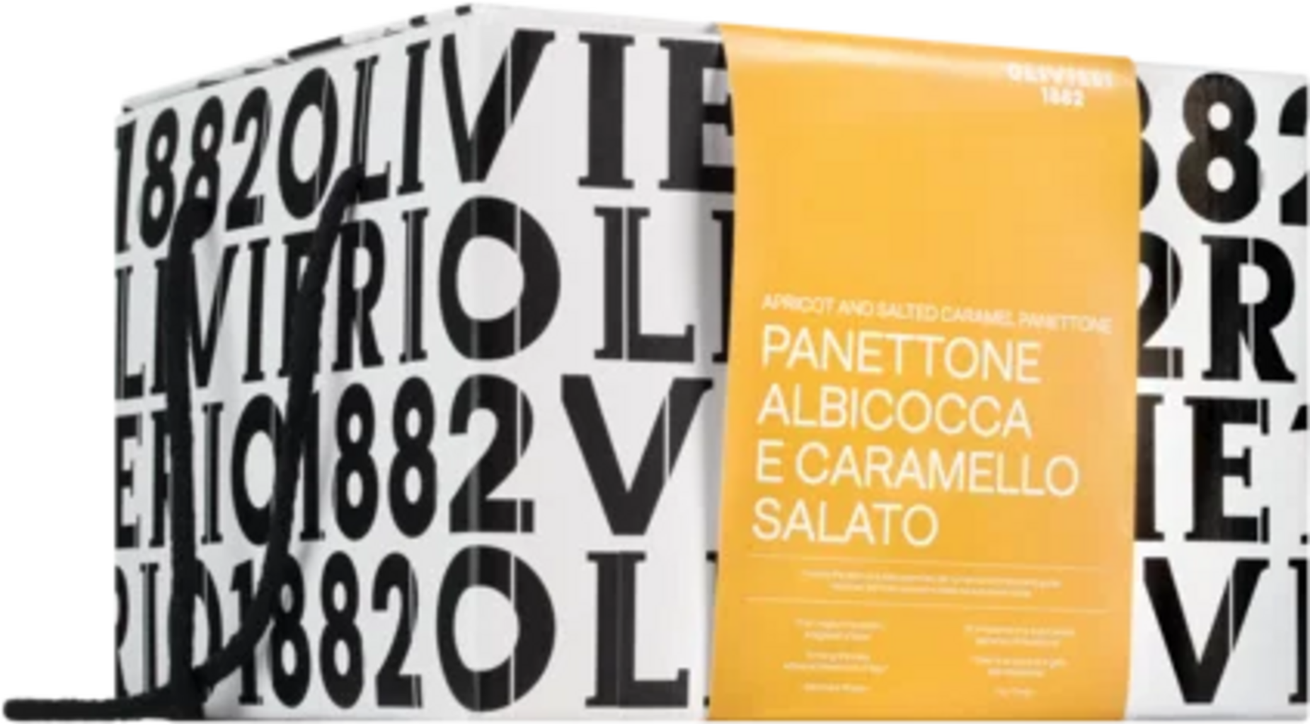 Denna saftiga, fruktiga panettone, som tar fyra dagar att tillverka, skapas i familjen Olivieris traditionella bageri i Veneto. Luftig, mjuk och ändå uttrycksfull - med de finaste bitarna av aprikos och delikata bitar av saltad karamell som avrundar smaken perfekt.