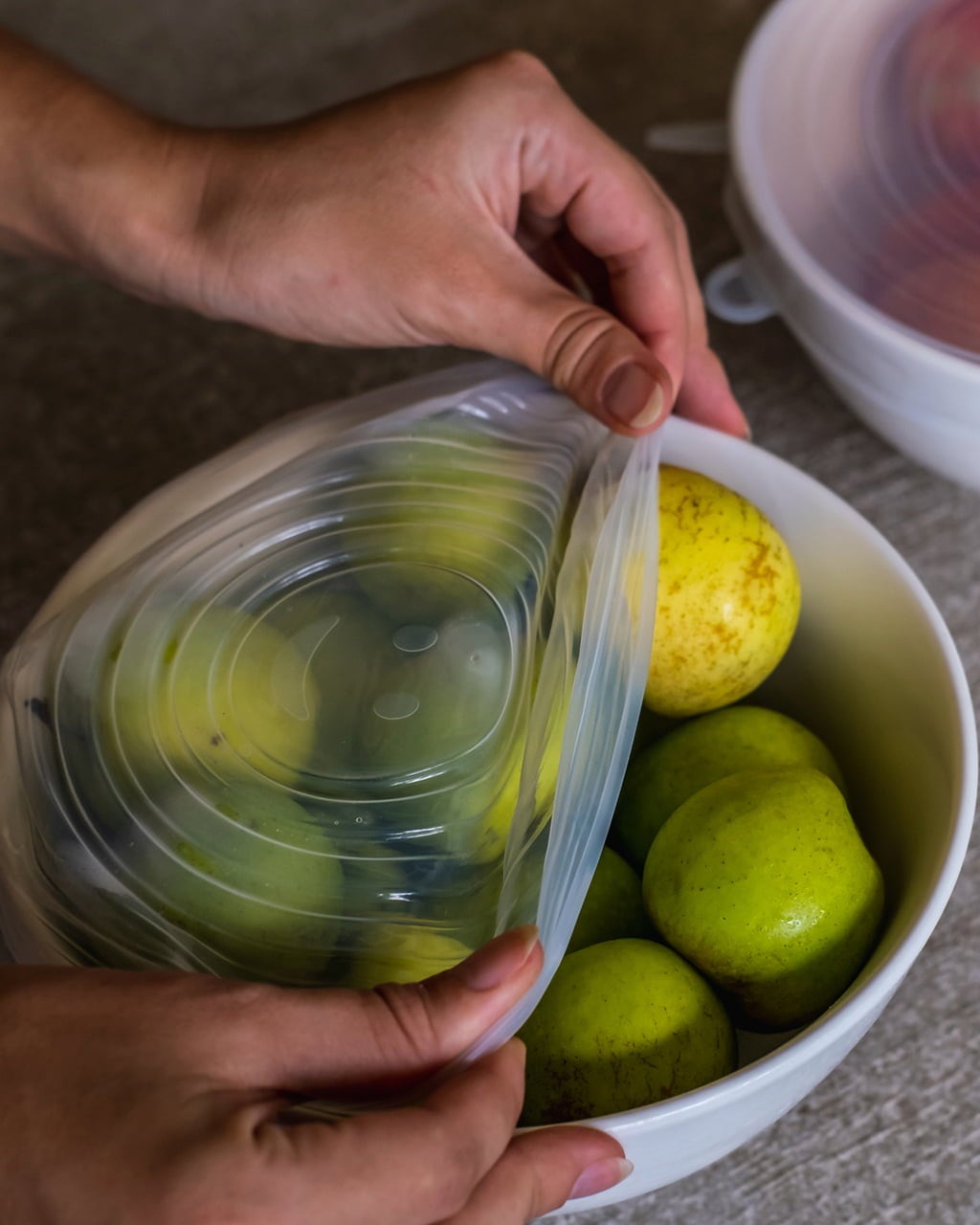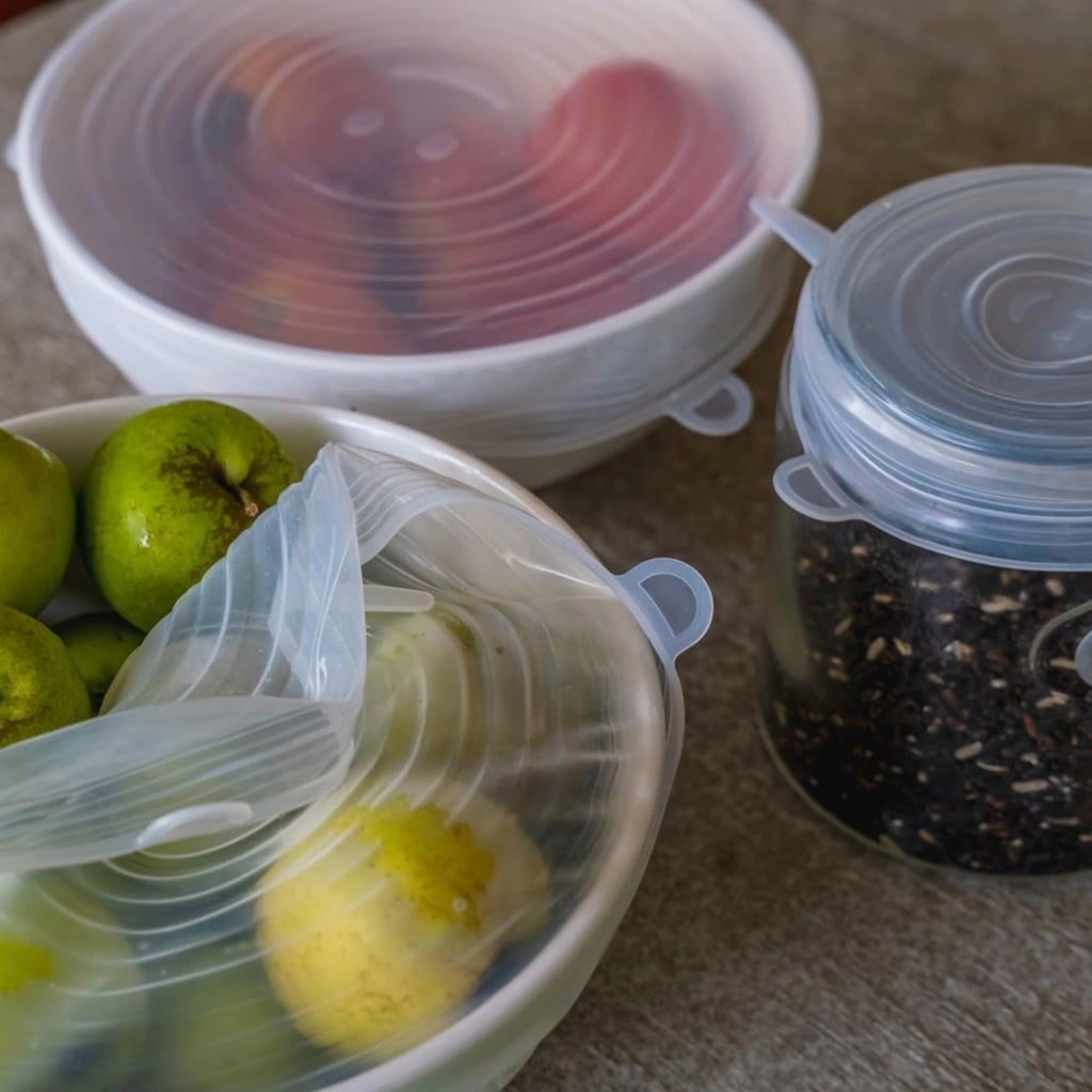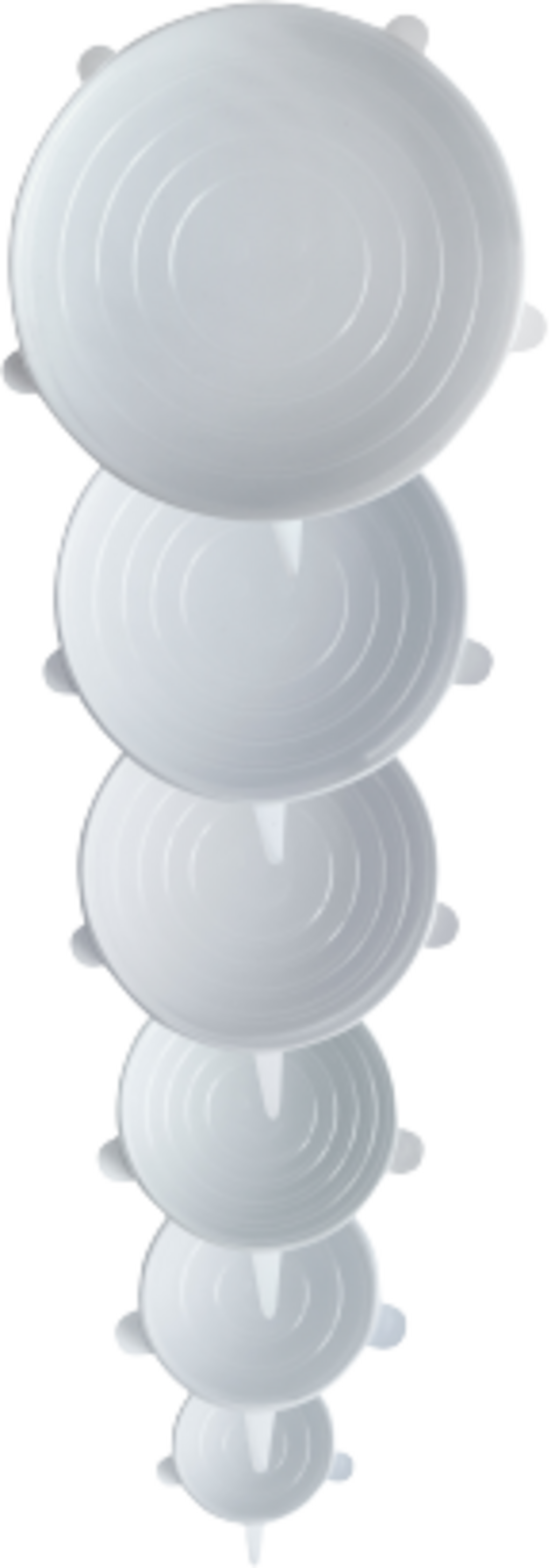 Aluminium och plastfolie är engångsprodukter som slösar bort värdefulla resurser och genererar mycket avfall. Med dessa smarta lock av livsmedelssäker silikon kan du lita på ett miljövänligt alternativ i framtiden! Locken är flexibla, lätta att rengöra i diskmaskinen och kan ständigt återanvändas. De är inte bara lämpliga för att täcka överbliven mat i en lufttät behållare för hygienisk förvaring i kylskåpet, de kan också användas för att förvara mat i frysen. Rätt förvaring håller maten fräschare längre och du kan minska både avfall och matsvinn med dessa innovativa silikonlock!