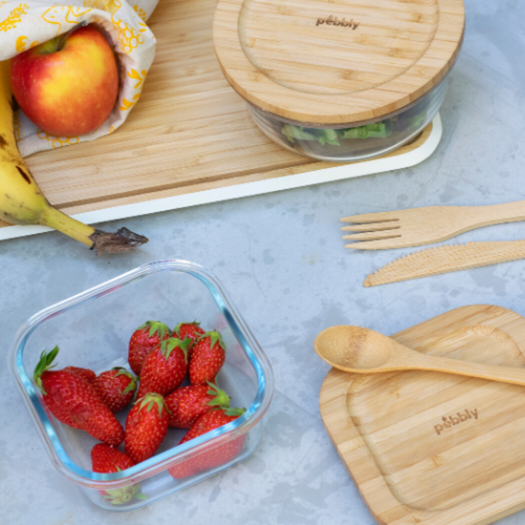 Pebbly Fyrkantig Glasburk med Bambulock, 0,52 Liter