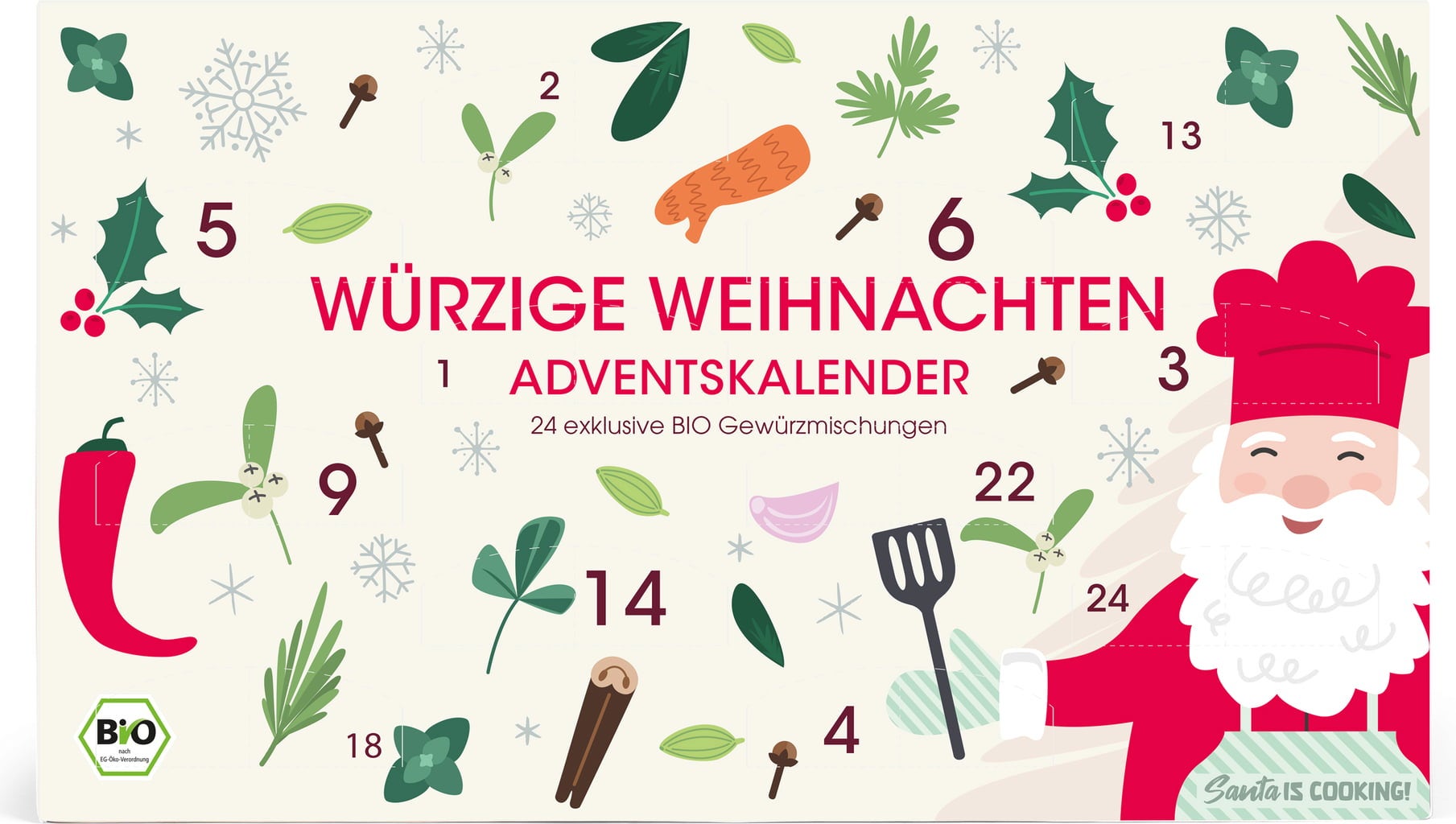 "Spicy Christmas" adventskalender innehåller 24 extraordinära ekologiska kryddblandningar som gör varje adventsdag till en kulinarisk höjdpunkt. De nyskördade blandningarna kommer från små, ekologiskt certifierade kryddträdgårdar på Sri Lanka och imponerar med sin ojämförliga kvalitet och mångfald av aromer. Kalendern erbjuder också en onlinereceptbok som ger kreativ matlagningsinspiration.