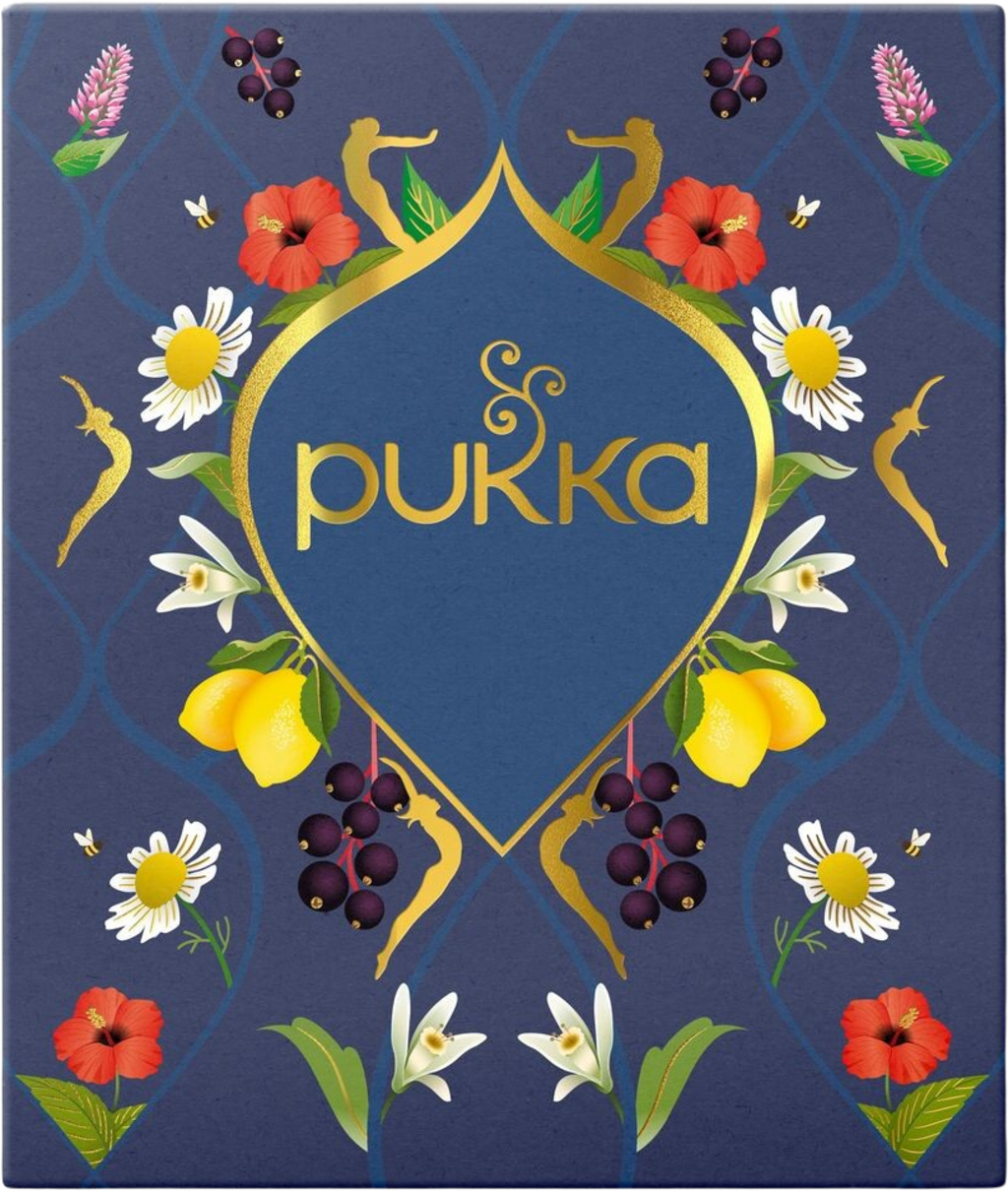 Den stora favorit-teförpackningen består av 9 olika teer som ger en varierad smakupplevelse. Tesorterna har noggrant valts ut av PUKKA:s experter enligt ayurvediska läror och kommer att skämma bort dig med sina balanserade smaker. Asken har också en vacker, blommig design som är ett riktigt blickfång och passar både för att presentera teerna och för återanvändning.