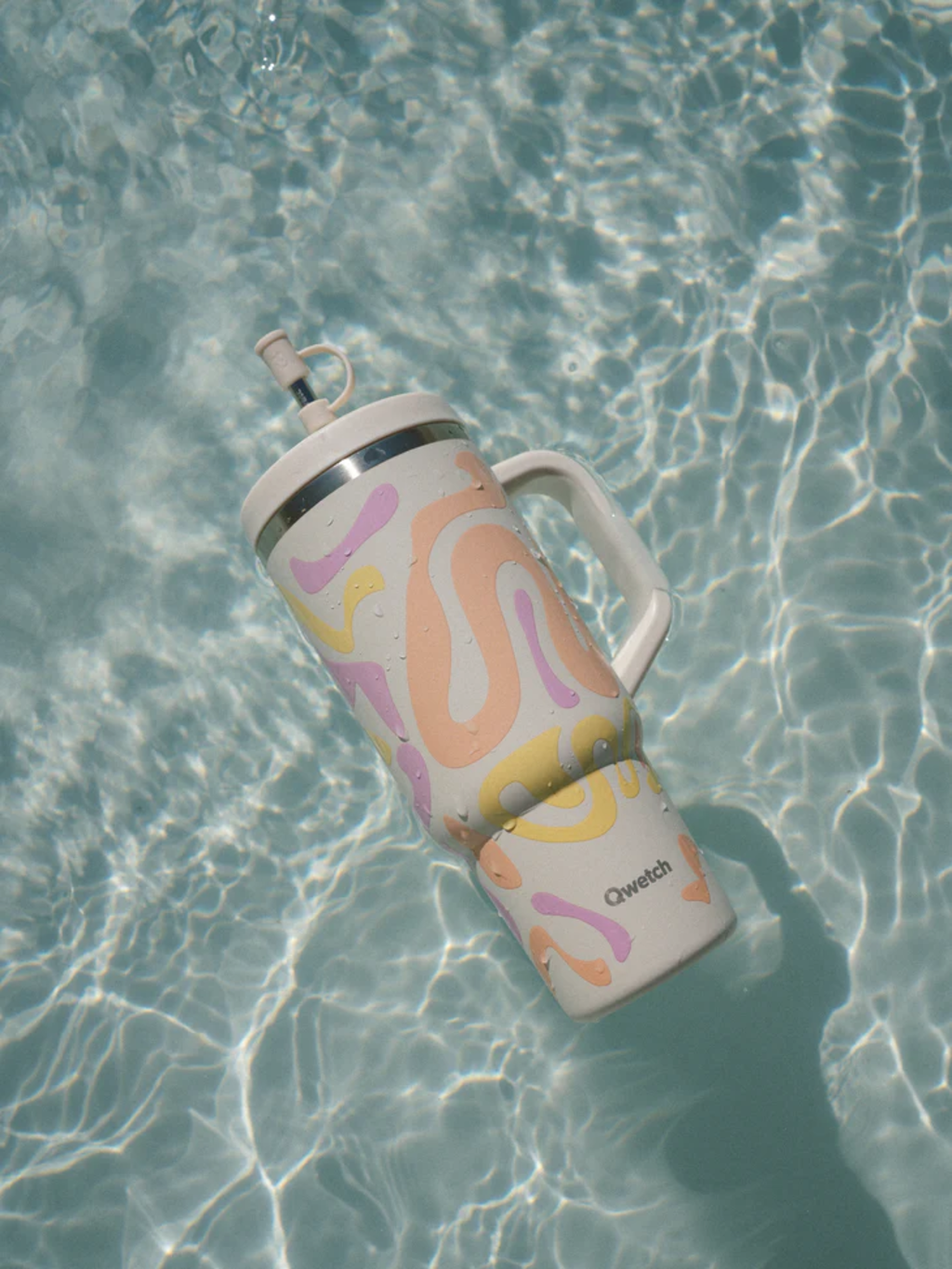 Qwetch Travel Cup Isotherme Inox - Waves - 900ml, Sable