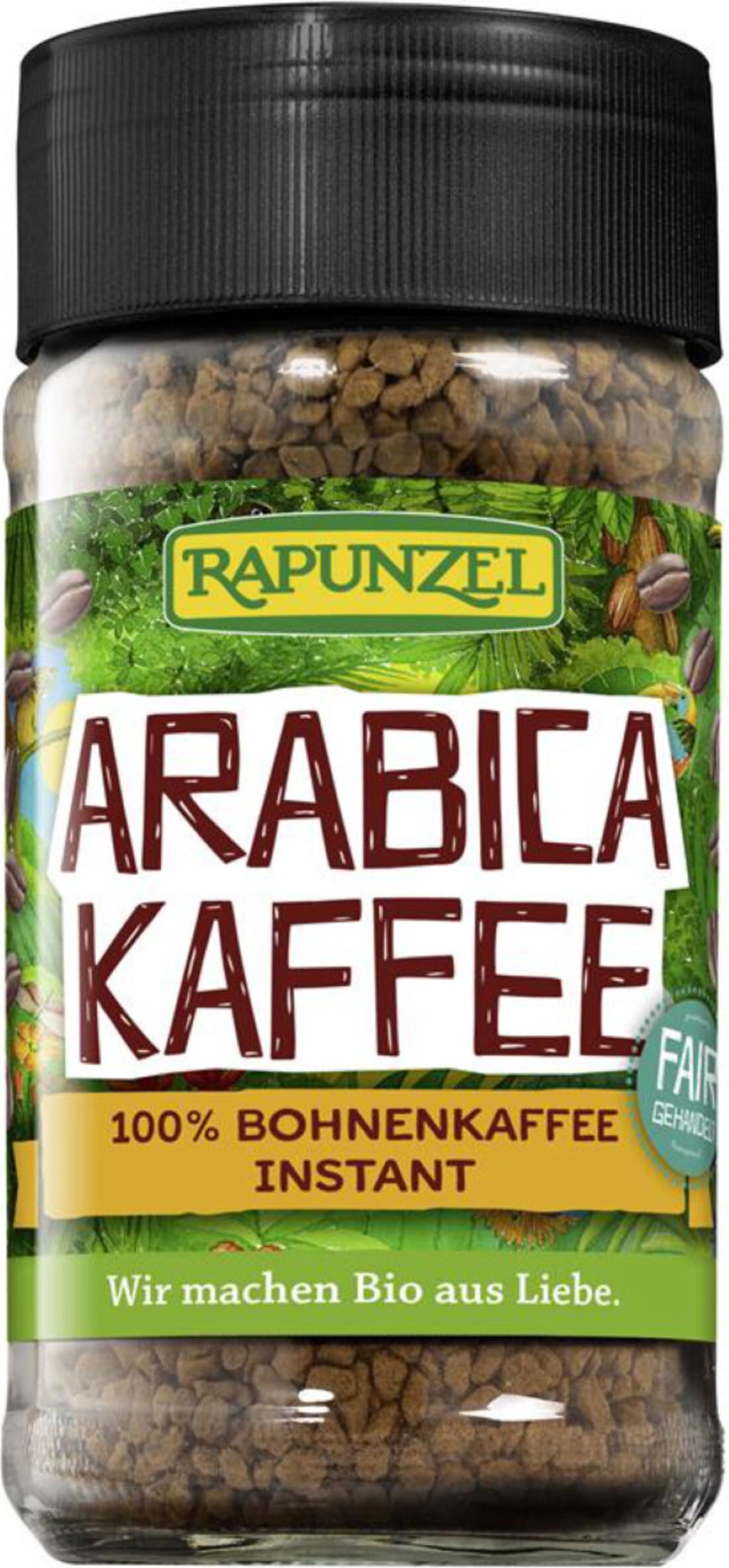 Full arom från 100 % Arabica-bönor, fyllig smak med en lätt bitter ton av choklad i avslutet. Låter det inte som snabbkaffe? Jo då! Rapunzel använder endast bönor av högsta kvalitet från Sydamerika. Rättvist handlade och förädlar dem varsamt: genom en avancerad process med flera tork- och fryssteg skapas detta exklusiva kaffe som du enkelt blandar med hett vatten. Perfekt både hemma och på resan!