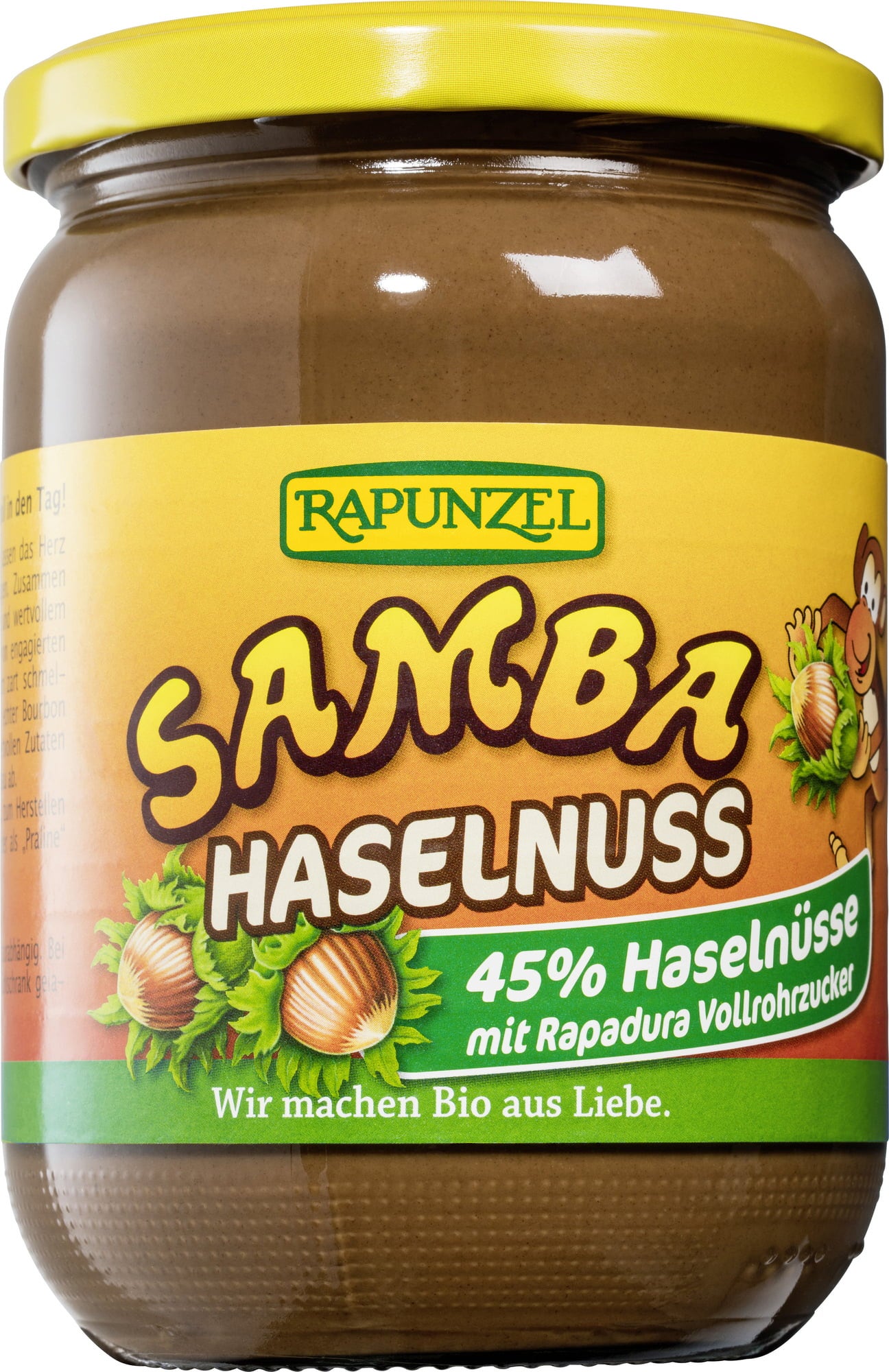Detta gillar både stora och små som älskar söta nötpålägg. Samba Hasselnöt från Rapunzel är en len, smältande kräm som innehåller 45 procent nyrostade hasselnötter. De blandas varsamt med övriga ingredienser och förädlas till en krämig konsistens. En nypa äkta bourbonvanilj rundar av smaken och gör denna påläggskräm till en riktig njutning på bröd, i bakverk eller desserter.