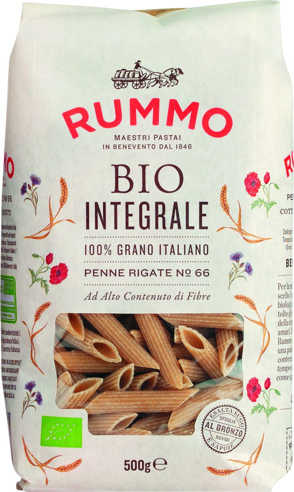 Rummo Bio Le Biologiche - Fullkorns Penne Rigate N°66, 500 g