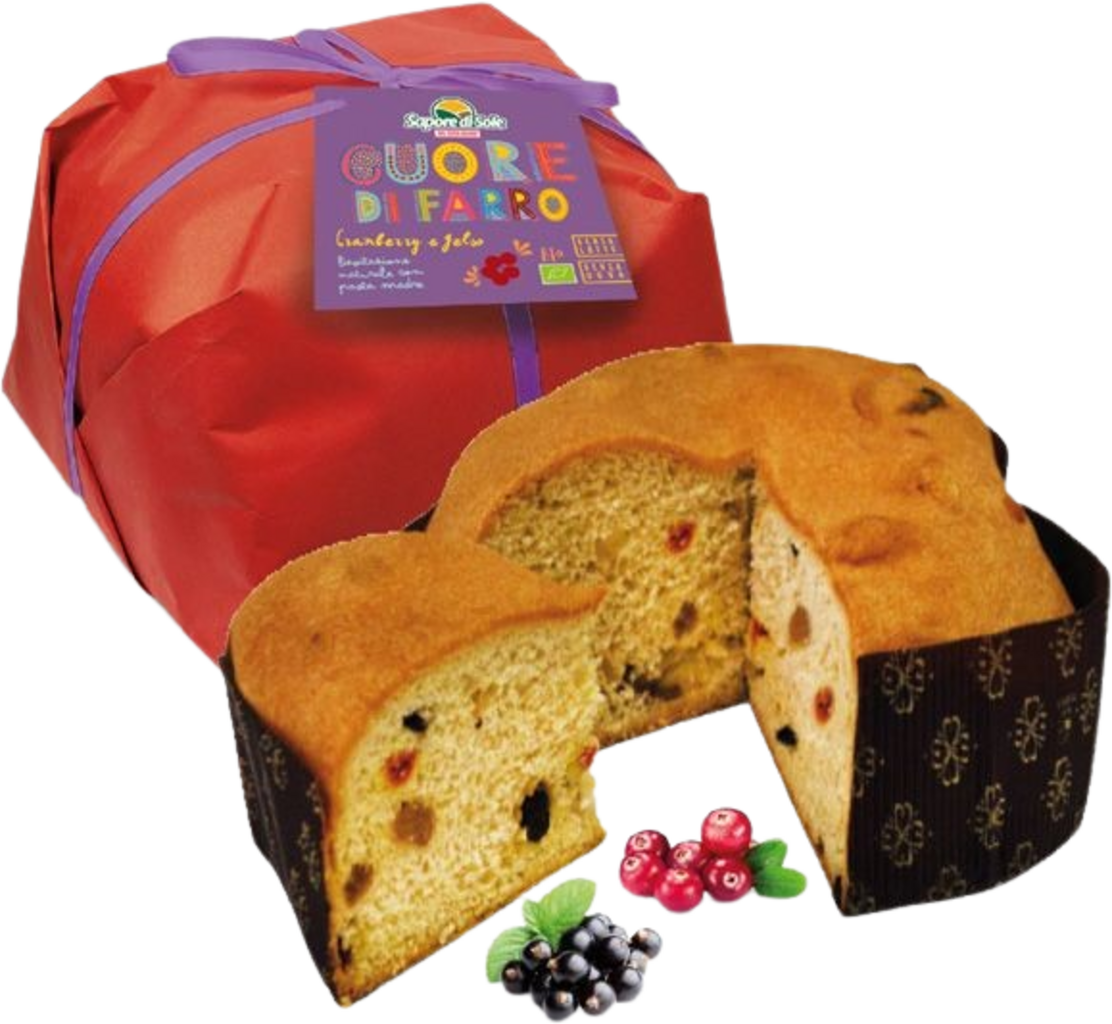 Denna Cuore di farro Cranberry e Gelso Panettone från Sapore di Sole har ett rent växtbaserat recept och är därför perfekt för det veganska festbordet i jul. Delikat sötade tranbär och mullbär ger panettonen, som är gjord på surdeg, en fruktig smak. Receptet är sötat med agavesirap.