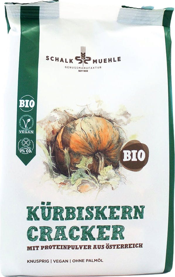 För alla som älskar veganska snacks - de krispiga ekologiska dinkelpumpafrön-kexen gjorda av de mest värdefulla råvarorna är rika på protein, fria från palmolja och laktos och fungerar som ett gott mellanmål när du känner för det. De passar även bra till sallader och råa grönsaker eller till dipp och pålägg. Kexen förädlas med havssalt och olivolja.