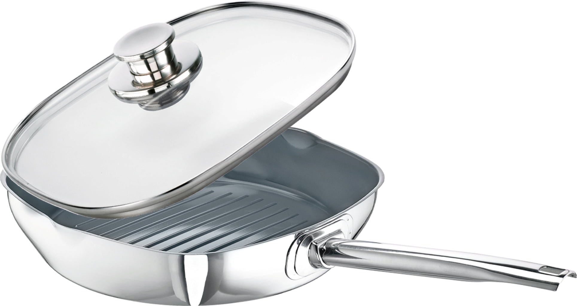 Grillpannan i rostfritt stål inkl. lock från den hållbart producerade Greenlife-serien från köksredskapsspecialisten Schulte-Ufer är den perfekta pannan för fettsnål, krispig och hälsosam stekning. Den imponerar inte bara med sina högkvalitativa material och utförande, utan också med utmärkta grillresultat och bekväm hantering.