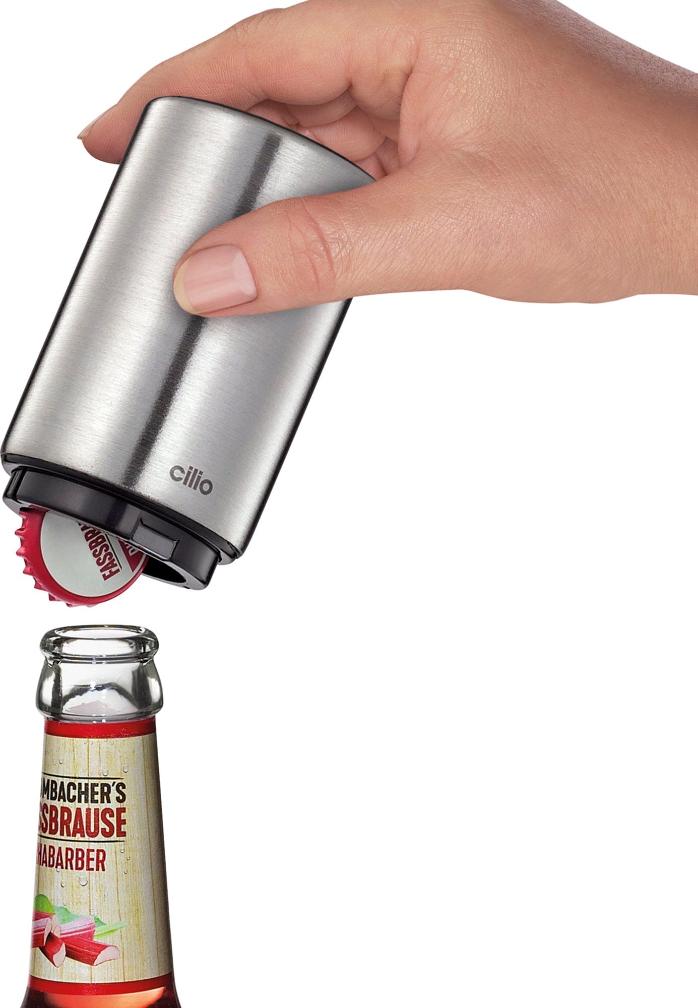 Flasköppnaren APERTO från cilio öppnar dina drycker på ett ögonblick. Ett oumbärligt redskap för grillkvällar, middagar eller hemmabaren, med tidlös design i slitstarkt rostfritt stål.