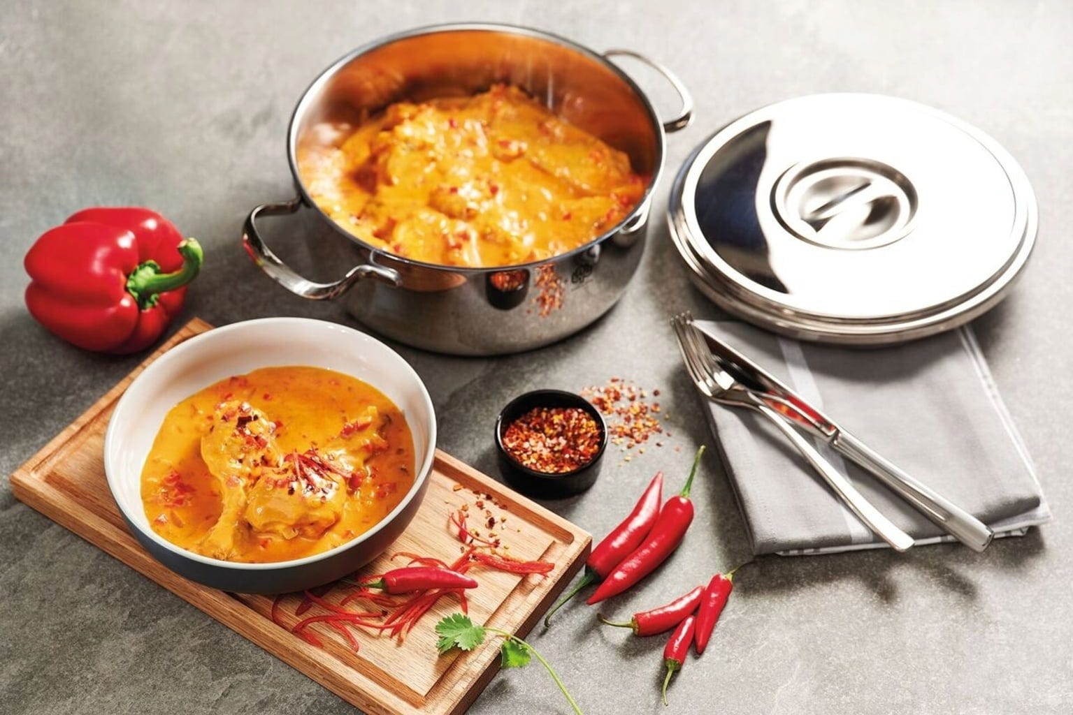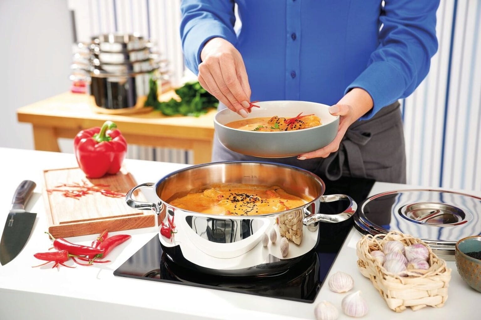 Romana i har inspirerat kockar i mer än 40 år! Det är inte så konstigt, eftersom det är en mångsidig gryta som kan användas på alla typer av spisar tack vare sin robusta kopparbotten. Genomtänkta funktioner som den perfekt formade kanten som gör att man kan hälla av vatten etc utan att spilla och skalan på insidan gör den mycket praktisk och användbar.