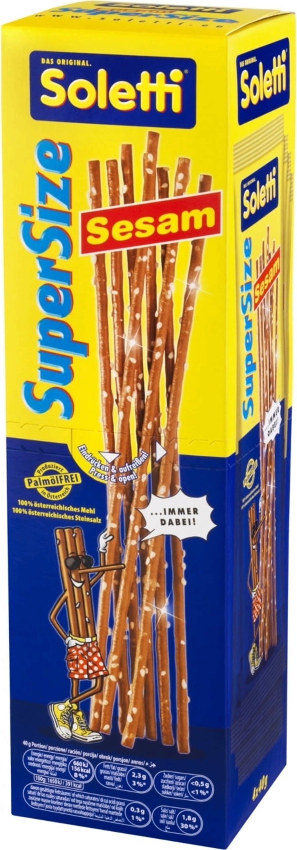 Den perfekta snacksfavoriten för alla som inte kan få nog av gott knaprigt tilltugg. De 22 cm långa sesampinnarna bjuder på nästan oändlig njutning. Sesam är dessutom en utmärkt källa till kalcium och fibrer – perfekt för dig som tänker på hälsan utan att kompromissa med smaken.