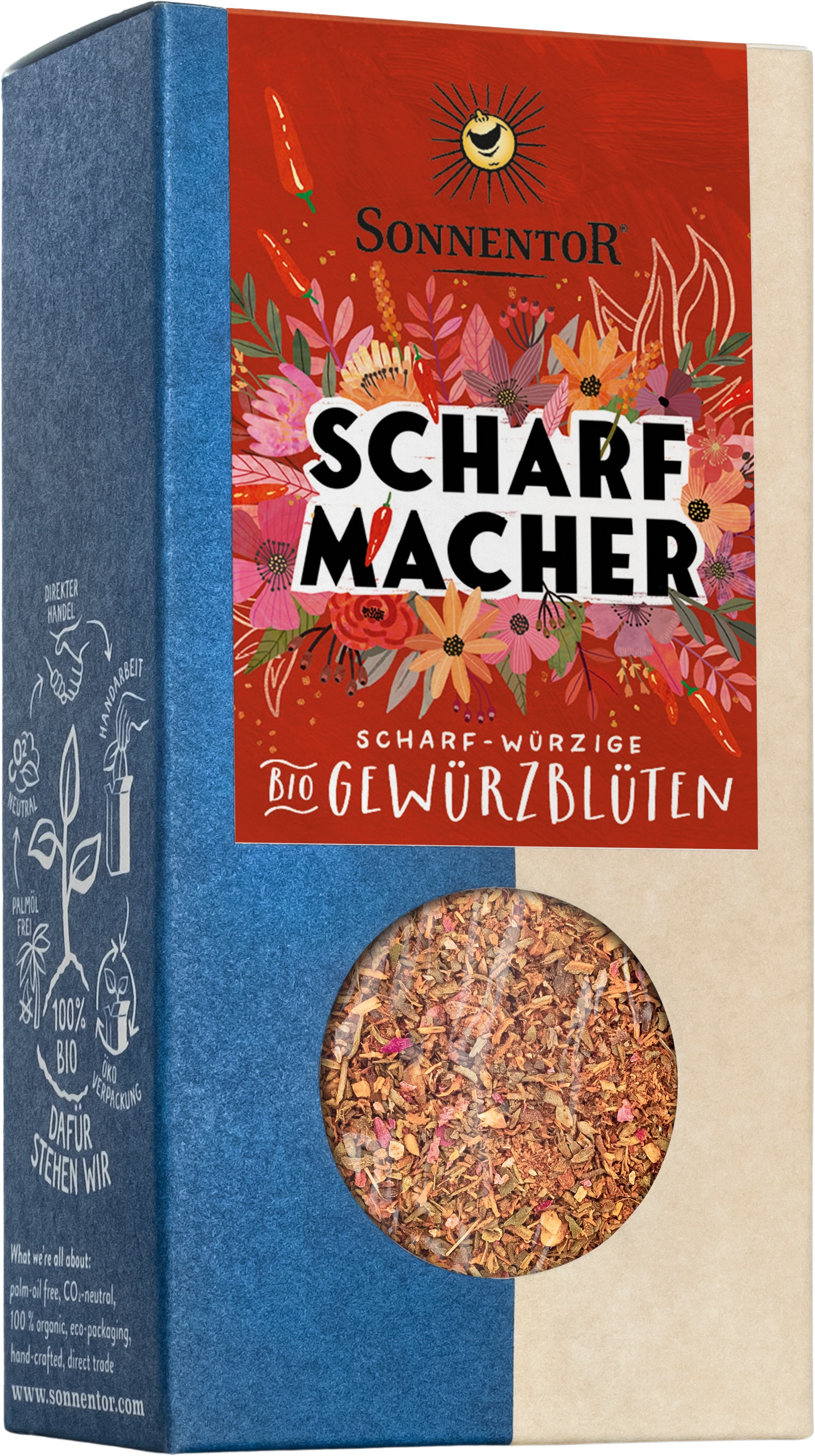 Hotpeppar är en eldsjäl i soppor, pastasåser och grytor - de som får smak för dem blir snabbt fans. De som älskar smaken av paprika och chili bör låta kryddblomblandningen värma upp dem rejält. Den ekologiska blandningen ger hjärtliga och vegetariska rätter en behagligt kryddig smak.