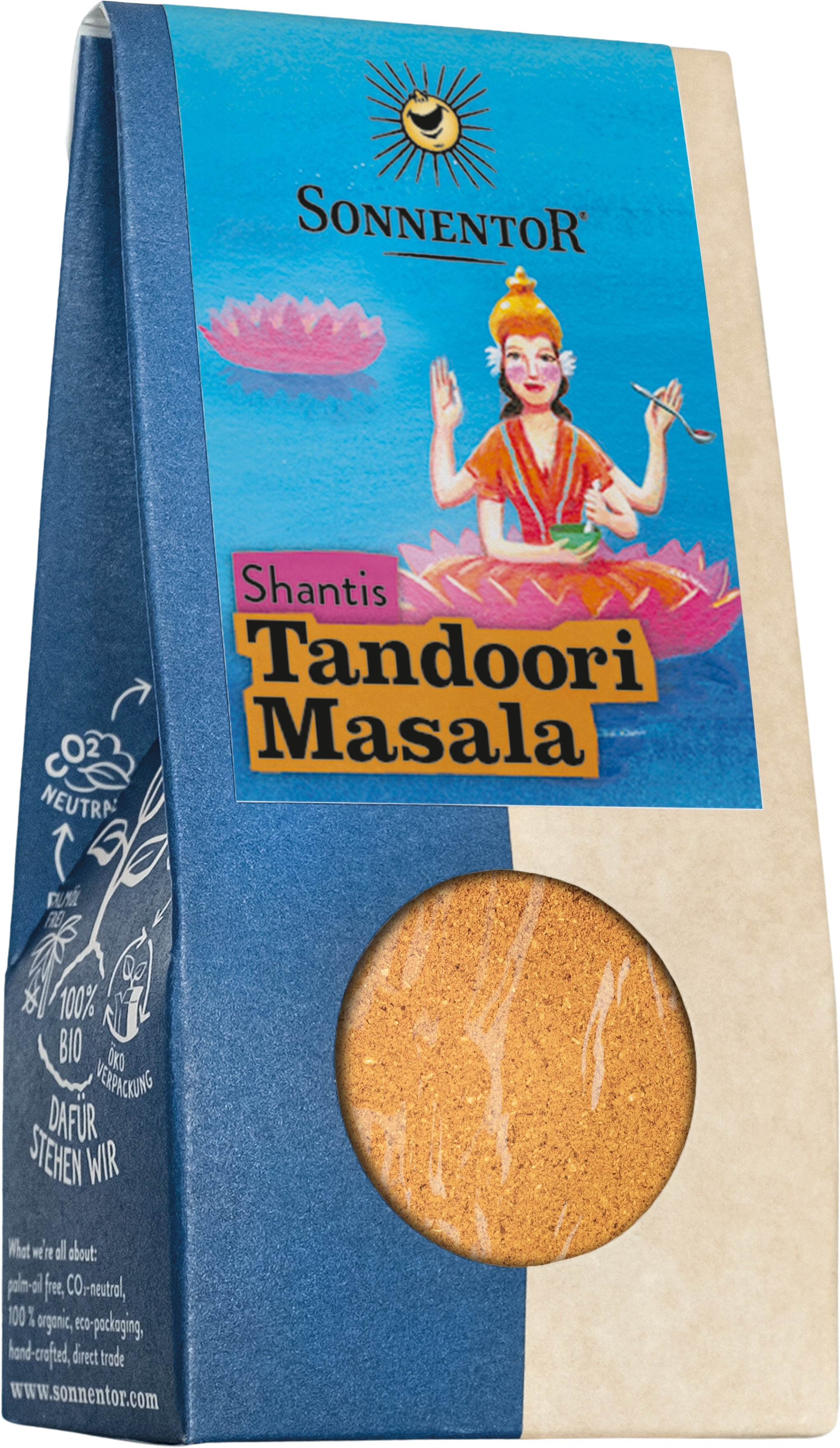 Shanti's Tandoori Masala, en ljuvlig indisk blandning med kryddiga accenter. Redan i doften förtrollar en söt orientalisk krydda med färska kardemummanuanser. I smaken imponerar den sensuella indiska kryddmagi med en lätt fräschör.