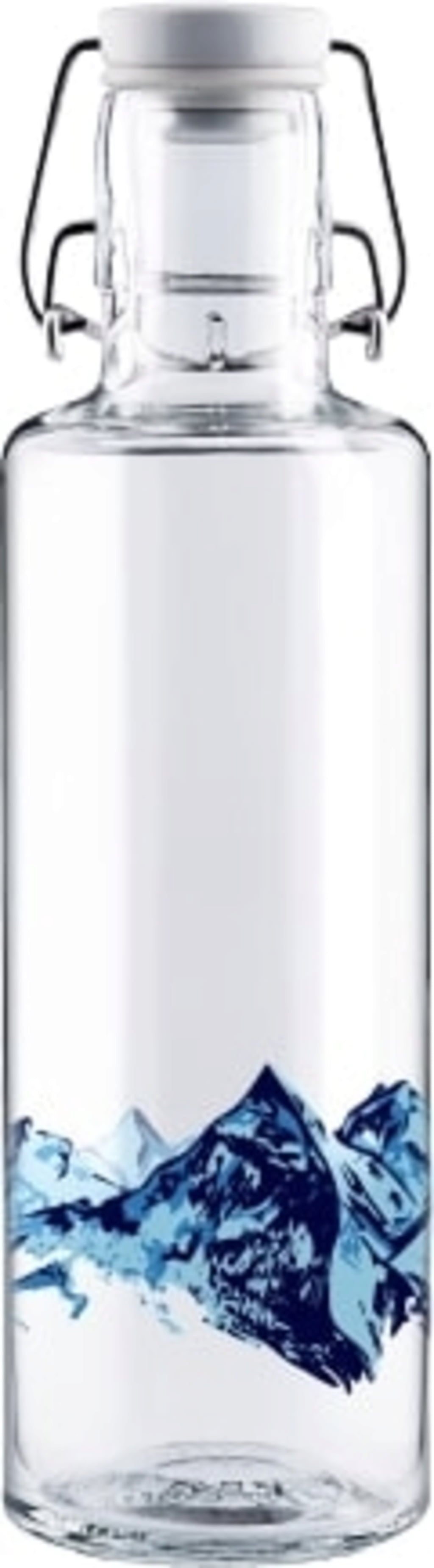 Glas, naturgummi, porslin och rostfritt stål = plastfri dricksflaska. Den vackra alpina designen ger visuell njutning. Alltid och överallt perfekt och miljövänligt utrustad.