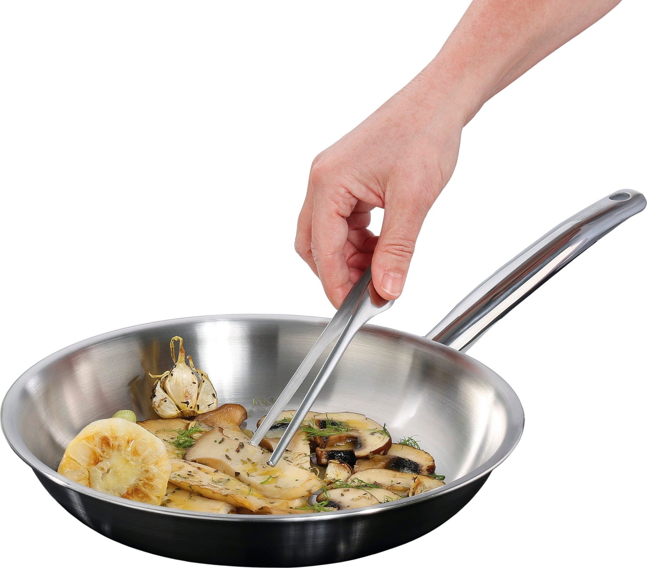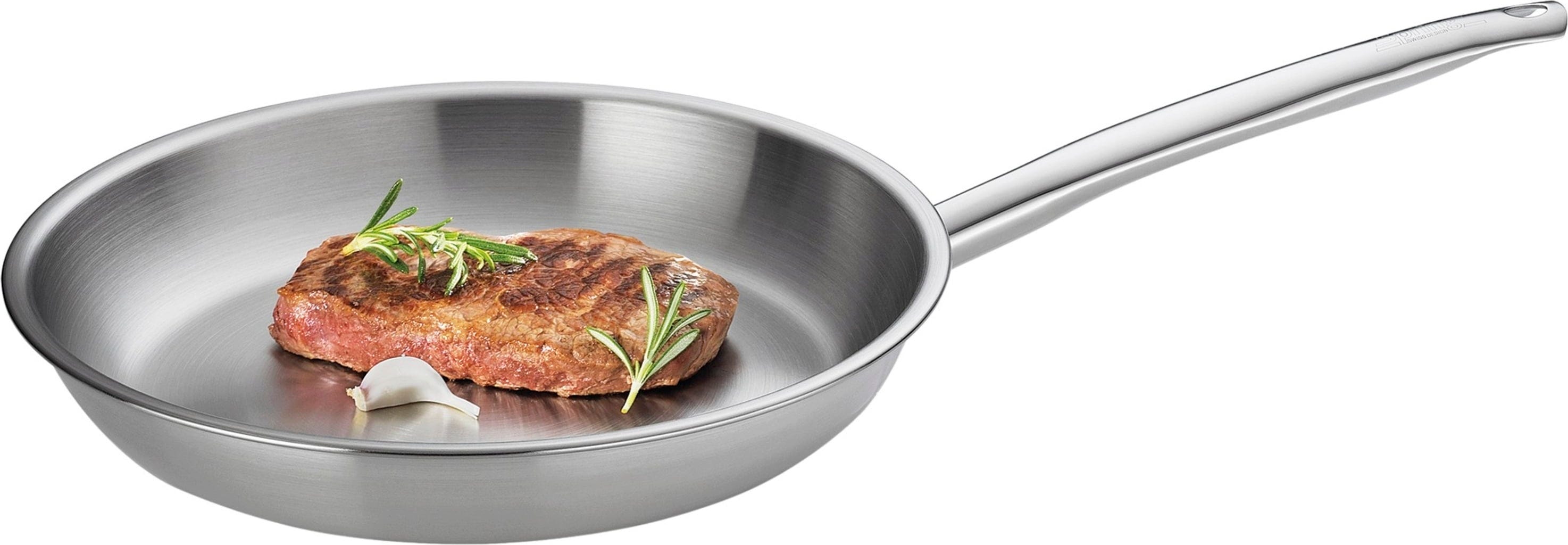 Den stilrena designen och den behagligt låga vikten gör dessutom pannan perfekt för servering direkt vid bordet. Den slutna kanten skyddar mot korrosion och möjliggör tillsammans med hällkanten exakt och droppfri upphällning. Oavsett om du använder den på induktion, i ugnen eller rengör den i diskmaskinen kombinerar denna panna hög funktionalitet med tidlös elegans i ditt kök.