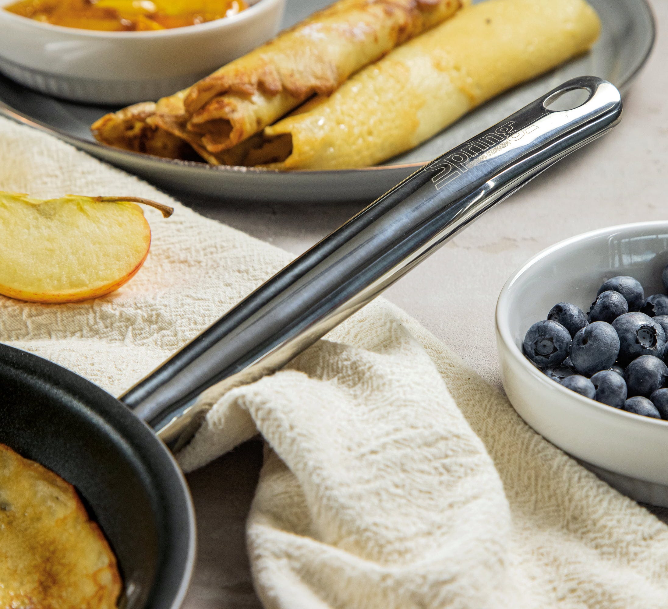 Med Vulcano Intense Pro från Spring får du professionell prestanda direkt i ditt kök! Det innovativa 5-lagersmaterialet med tredubbel aluminiumkärna ger snabb och jämn värmefördelning ända upp till den höga kanten, vilket ger dig full kontroll vid matlagningen. Den invändiga beläggningen är förstärkt med äkta schweiziska bergkristaller, vilket gör den mycket slitstark och möjliggör användning av metallredskap utan att skada ytan.