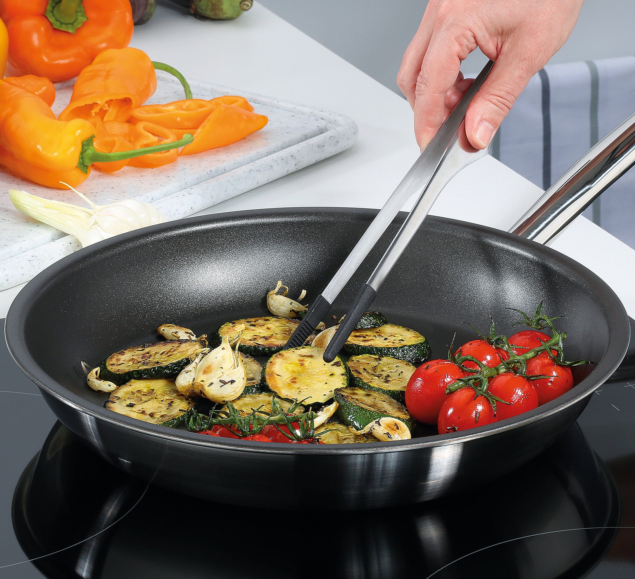 Oavsett om du använder den på induktion, gas eller i ugn upp till 250 °C klarar denna panna alla utmaningar. Den praktiska hällkanten gör det enkelt att hälla utan spill. Dessutom kan pannan beläggas om, vilket ger lång livslängd och bibehållen funktion över tid.