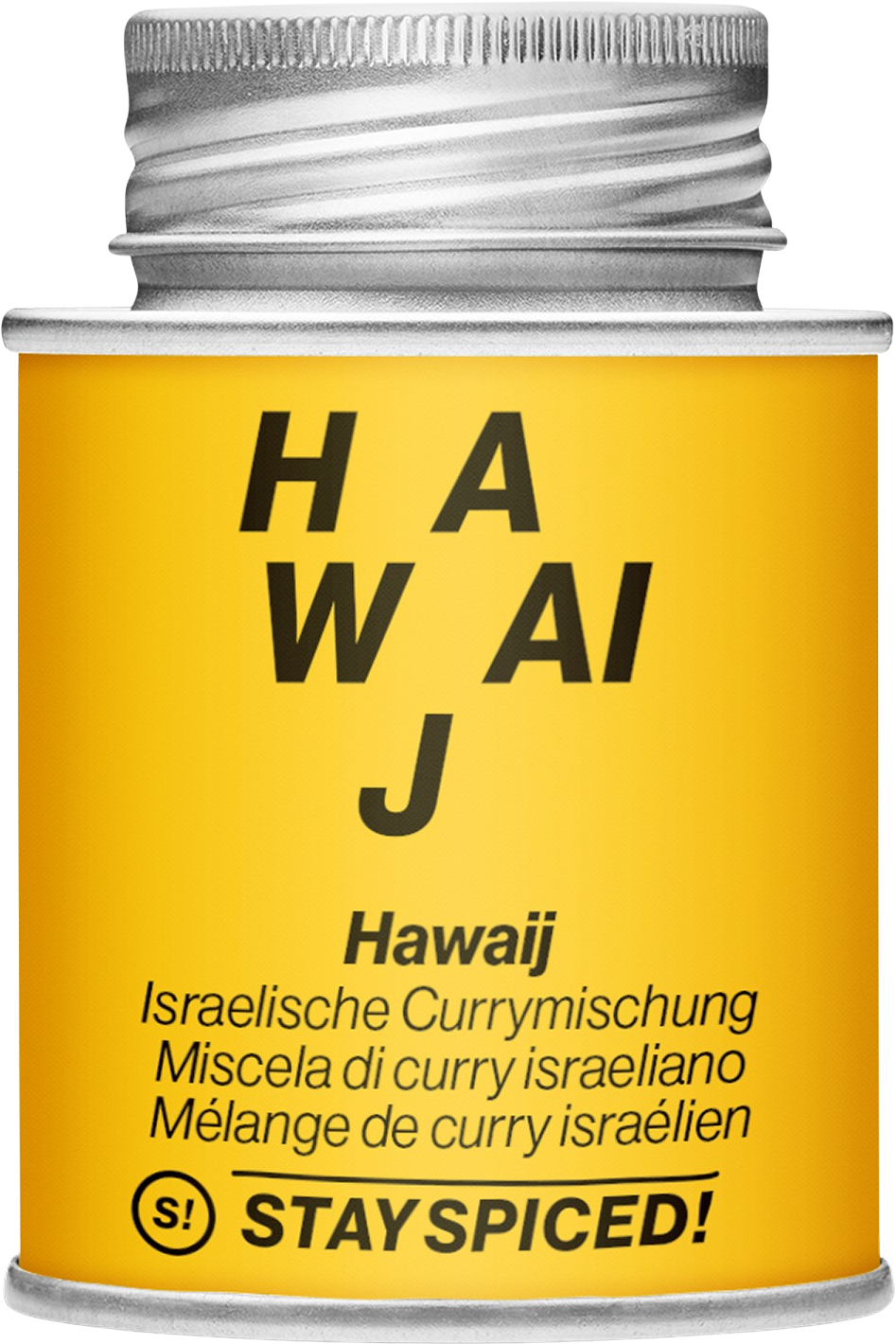 Den israeliska curryblandningen kombinerar exotiska smaker av gurkmeja, spiskummin, kardemumma och koriander. Särskilt anmärkningsvärt är tillägget av Loomi, även känd som svart lime. Detta avrundar den kryddiga, intensiva blandningen med en fräsch nyans. En extraordinär krydda för en mängd olika rätter och typer av tillagning. Testa till exempel Hawaij med grillad fisk och kött, grönsaker och grytor.