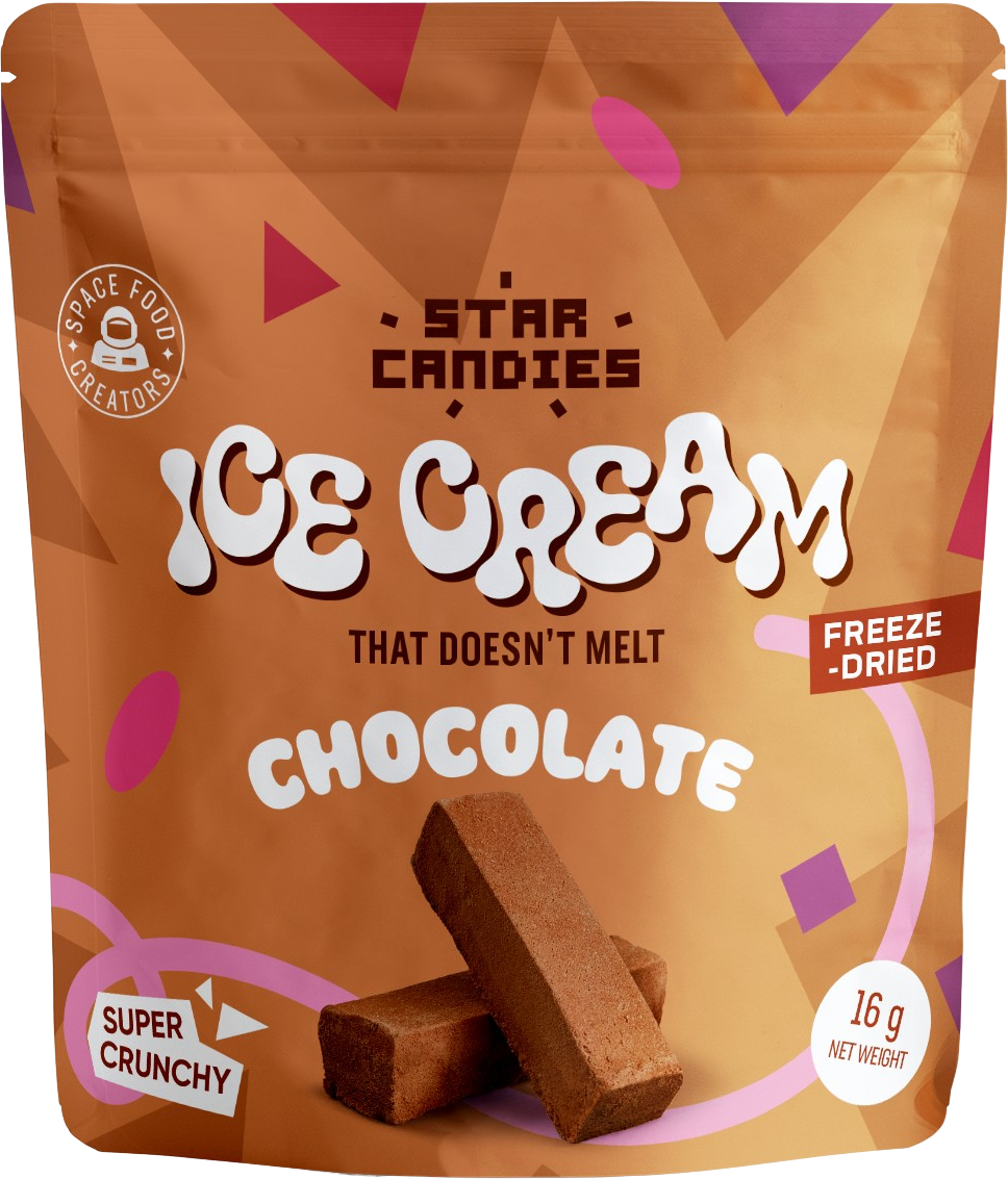Upptäck STAR CANDIES frystorkade glass med chokladsmak från Supergarden! Denna unika dessert är exotisk, spröd, ultralätt och smälter inte – en fullständig glassupplevelse utan behov av frys!
