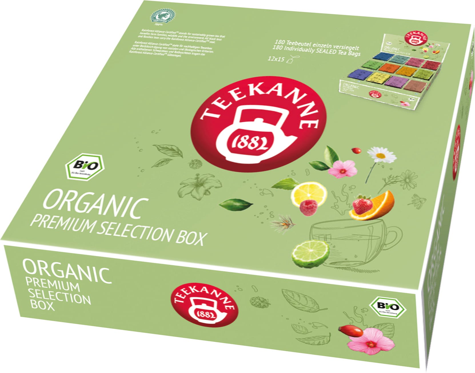 Upptäck dina favoritteer i högsta ekologiska kvalitet med Premium Selection Box från Teekanne. Perfekt för cateringbranschen eller passionerade tedrickare som inte vill binda sig till bara en sort.
