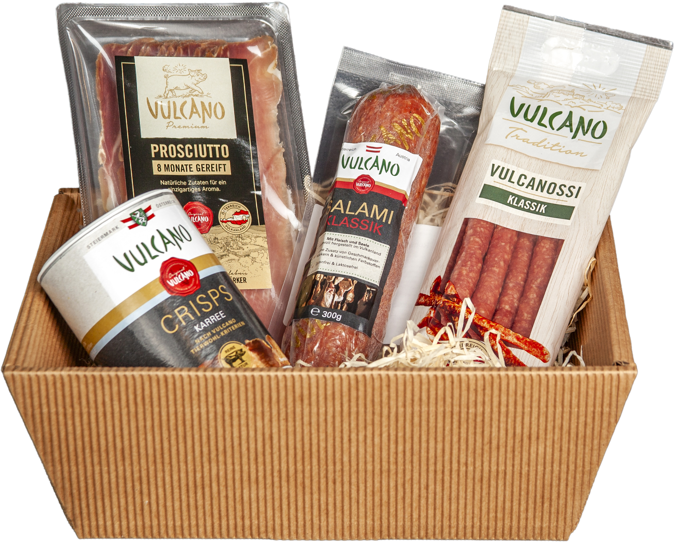 Vulcano Genussmoment-paketet kombinerar noggrant utvalda delikatesser för alla som uppskattar riktig smak. Oavsett om det är en present eller för att skämma bort dig själv - det här paketet erbjuder rejäla köttspecialiteter och krispiga snacks, perfekt för mysiga kvällar eller speciella tillfällen.