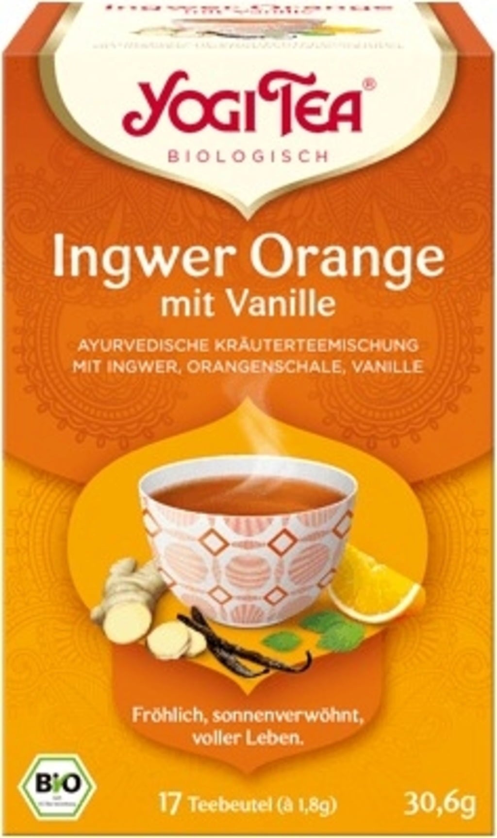En ovanligt livfull ört- & kryddteblandning som även tilltalar den mest kräsna smak. Frisk apelsin & len vanilj gör denna YOGI TEA till en riktigt speciell njutning.
