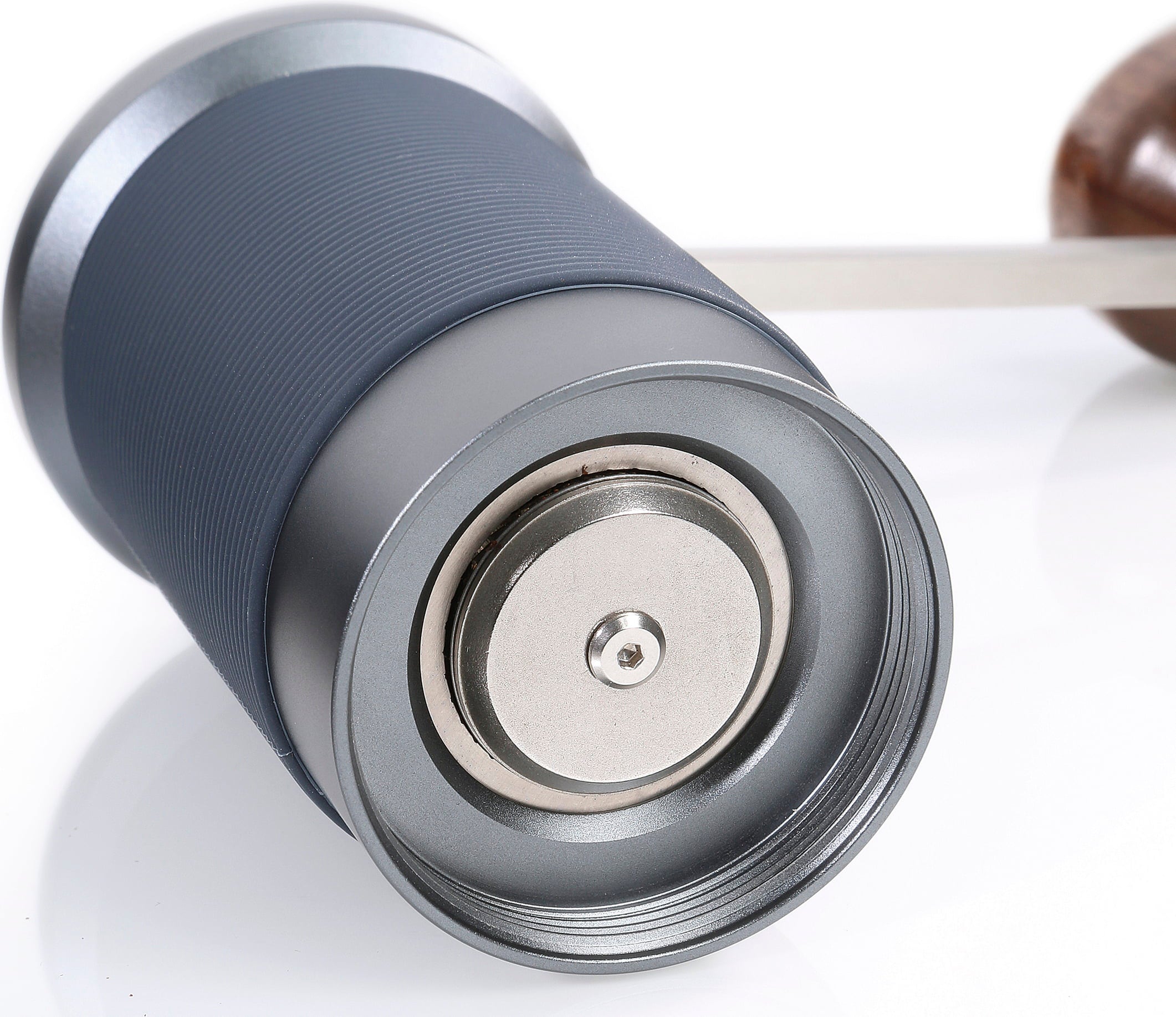 MASTER kaffekvarn från Zassenhaus maler bönor steglöst, från espressofint till filtermalet. Den kullagrade spindeln gör malningen lättare, medan silikonhöljet ger ett stadigt grepp. Levereras med smart förvaringsfack, rengöringsborste och dammskydd.