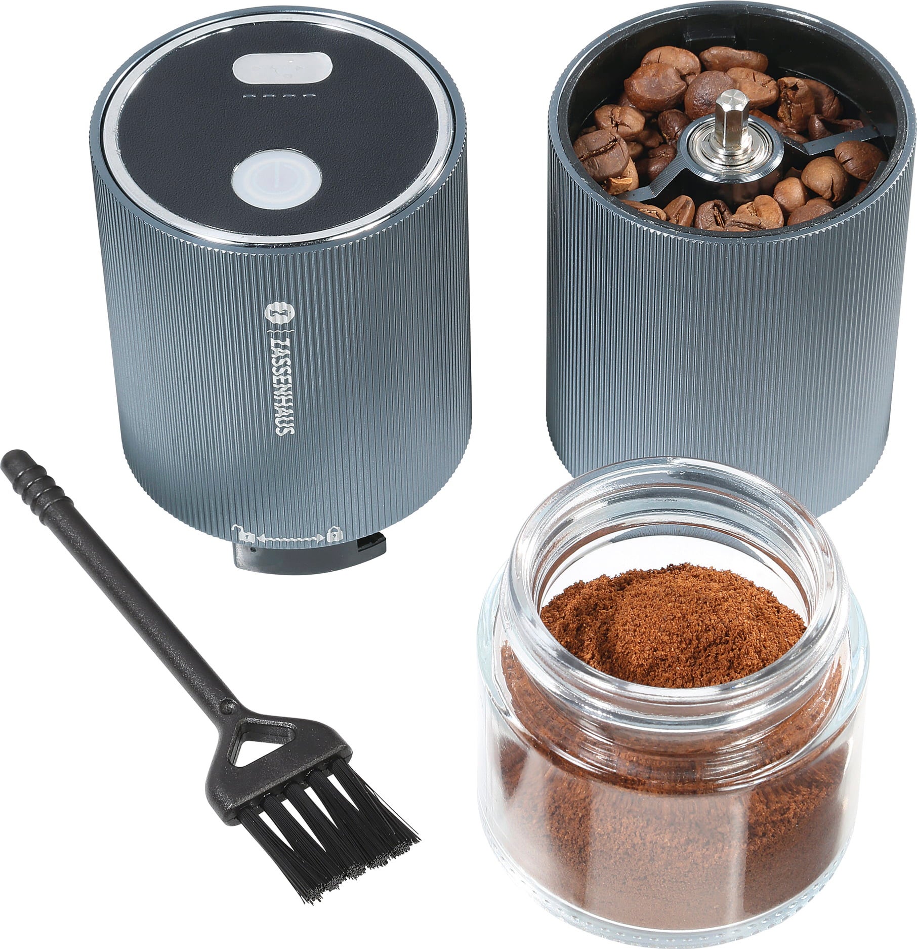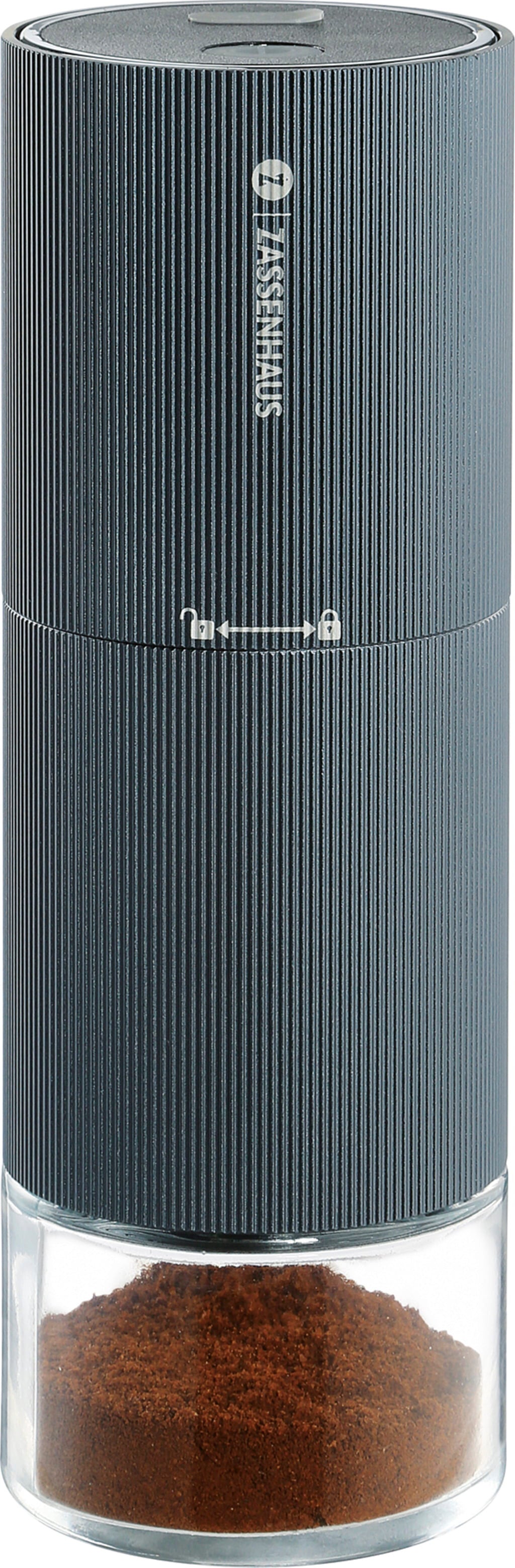 Med MASTER USB kaffekvarn från Zassenhaus njuter du av nymalet kaffe var du än är, hemma, på kontoret eller på resan. Ett knapptryck räcker: det robusta kvarnverket i rostfritt stål maler jämnt och bevarar bönornas fulla arom. Malningsgraden justeras enkelt, från espressofint till grovt för filterkaffe. Kaffet samlas direkt i glaskoppen och är redo att användas. Modern, kompakt och perfekt för alla kaffeälskare.