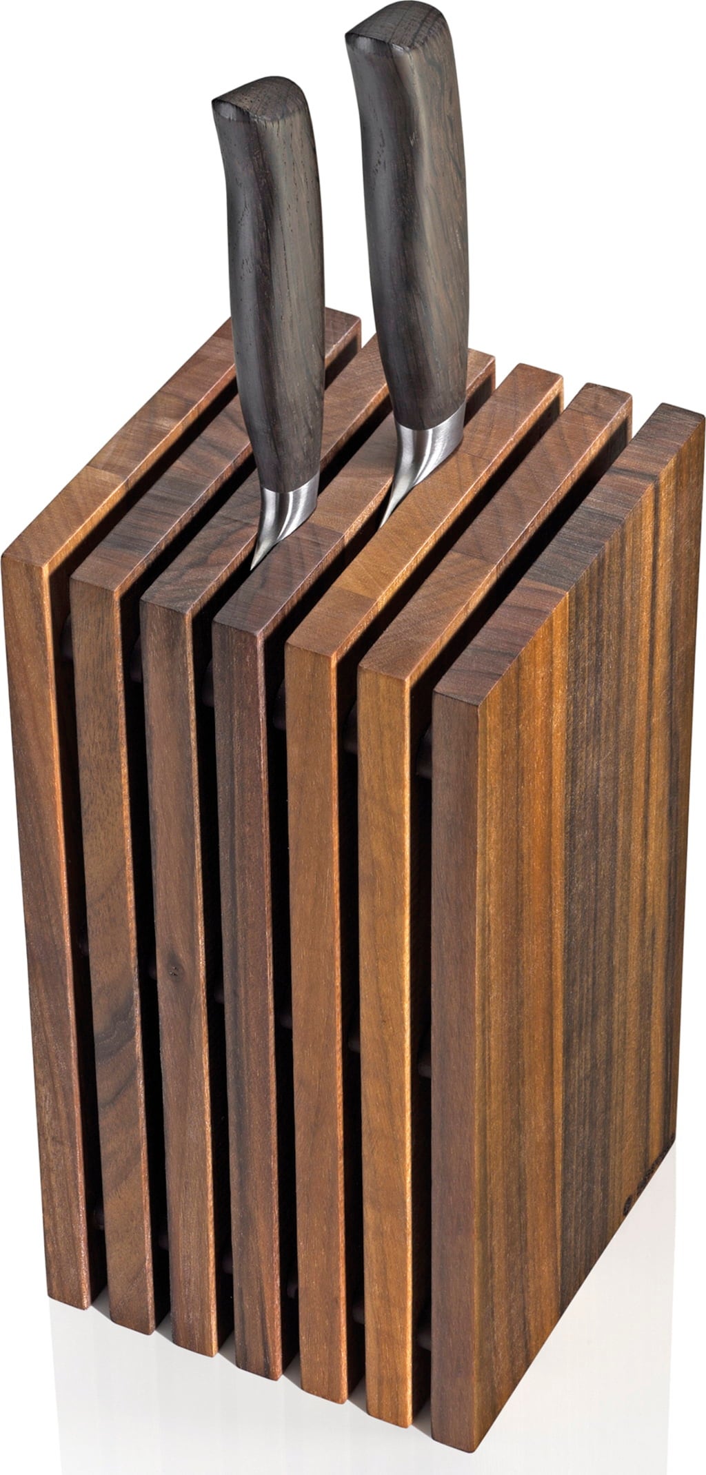 Denna knivblock från Zassenhaus kombinerar elegant design med funktionalitet. Den kompakta formen håller bänken organiserad, och det varma valnötsträet ger köket en exklusiv känsla. Här förvarar du alla typer av knivar, från kockkniv till köttkniv är det säkert och snyggt. Ett måste för dig som uppskattar både stil och kvalitet.