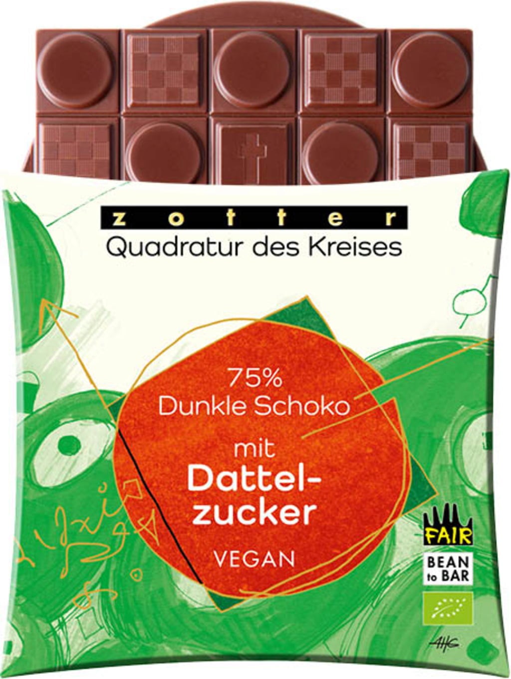 Zotter Schokoladen Cirkelns Kvadrat 75% Mörk Choklad med Dadelsocker Ekologisk, 70 g