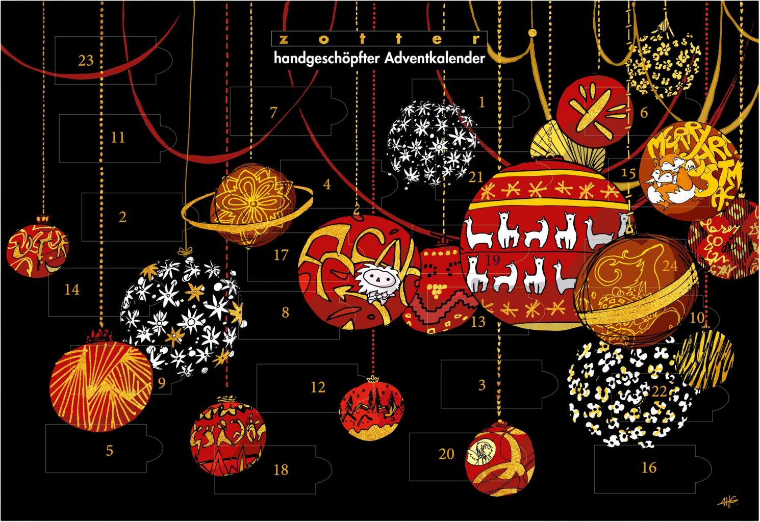 En chic stor väggkalender fylld med 24 olika handplockade minichokladbitar i frestande smaker som smörkola, äggtoddy, Marc de Champagne, hallon och pepparkaka med frukt. Chokladvarianter i ekologisk och rättvis kvalitet och vacker design förgyller adventstiden.