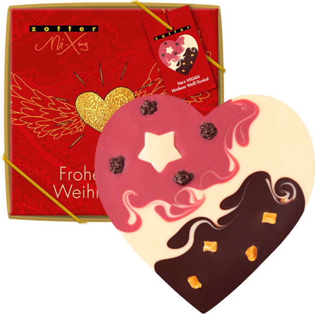 Zotter Schokoladen Hjärta Vegansk Hallon Vit Mörk, 100 g