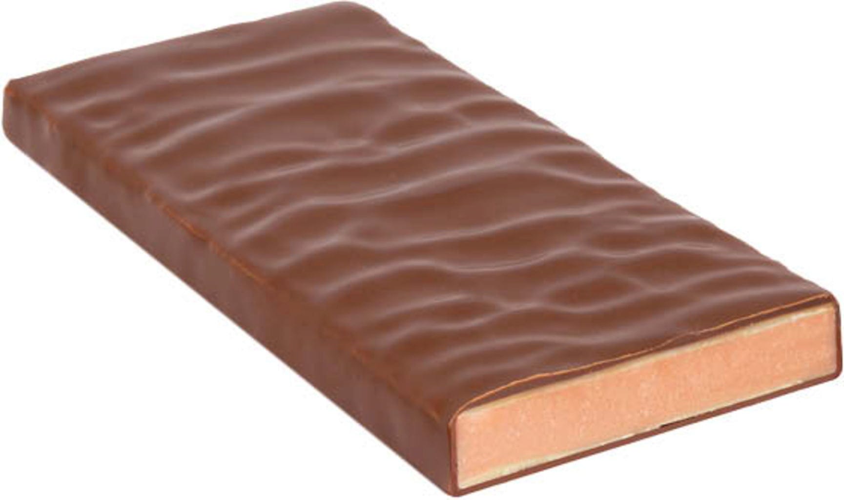 Inuti väntar en frisk grapefruktfyllning. Den rosaröda ganachen är gjord på grapefrukt, vit choklad och en skvätt lime. För sin vackra färg får den en touch av hallonchoklad, och ganachen täcks dessutom av ett tunt lager passionsfruktschoklad. Allt omsluts av den populära mörka mjölkchokladen med 50 % kakao från Zotter.
