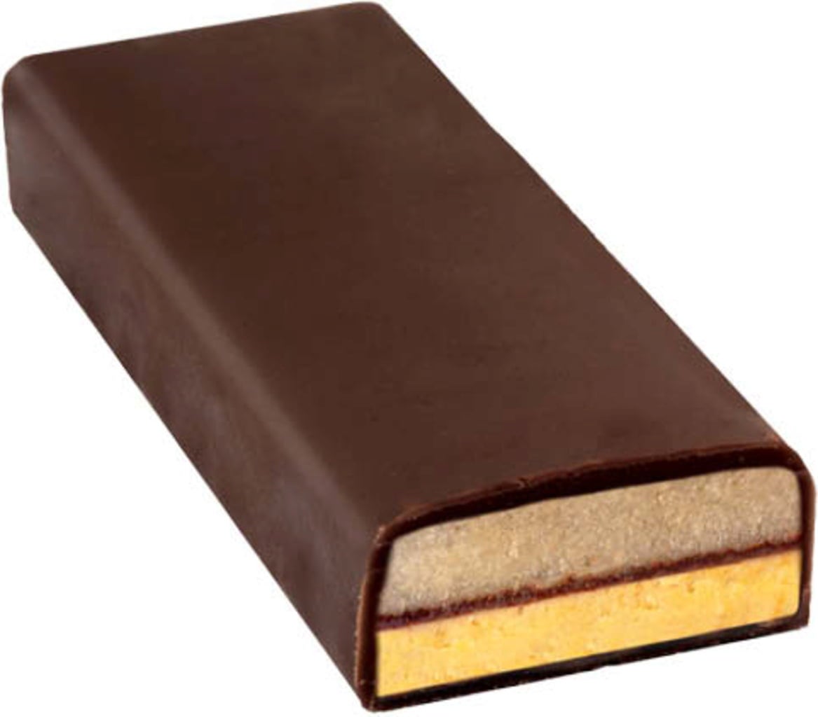 Inuti hittar du två lager: först en djupröd och frisk björnbärsfyllning, avrundad med en skvätt citron. Under den gömmer sig ett lent hasselnötsnougat, försiktigt smaksatt med äkta grankåda som ger ett subtilt skogsinslag. Allt omsluts av en blandning av mjölkchoklad och husets egen kastanjchoklad. Resultatet? En choklad som är fruktig, nötig och smältande på samma gång.