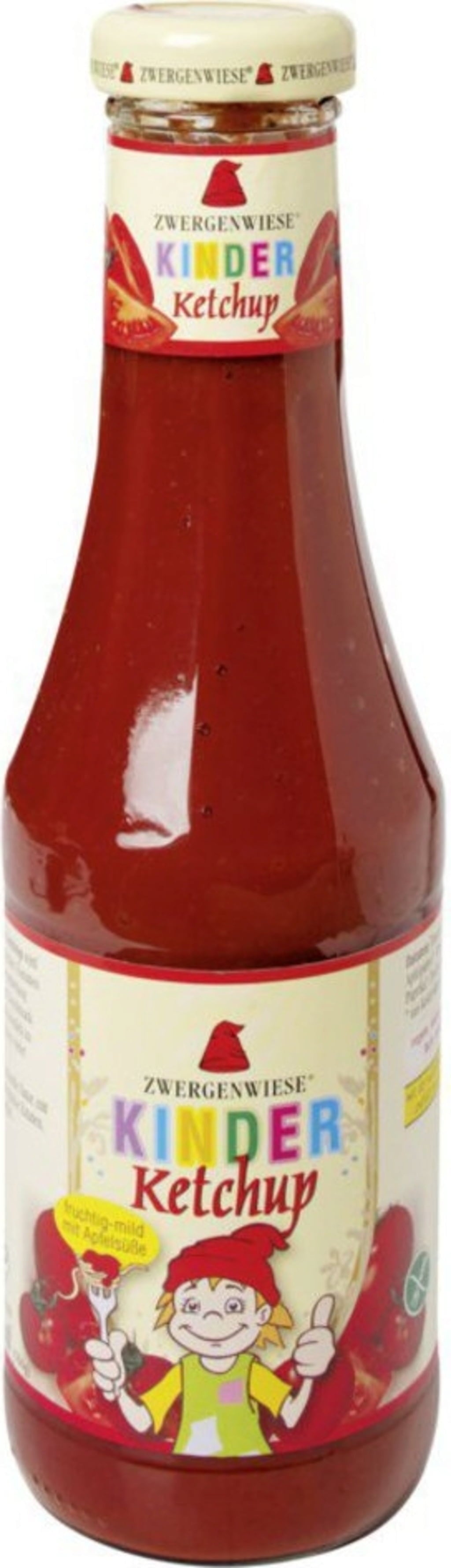 Zwergenwiese Eko Barnketchup med äppelsötma får inte bara barnens hjärtan att slå lite snabbare. Den innehåller inget industrisocker och sötas uteslutande med färska äpplen och äppelsirap. Resultatet är ett mildt, fruktigt och behagligt sött tomatketchup, en riktig gourmetketchup för barn, som du kan servera med gott samvete.